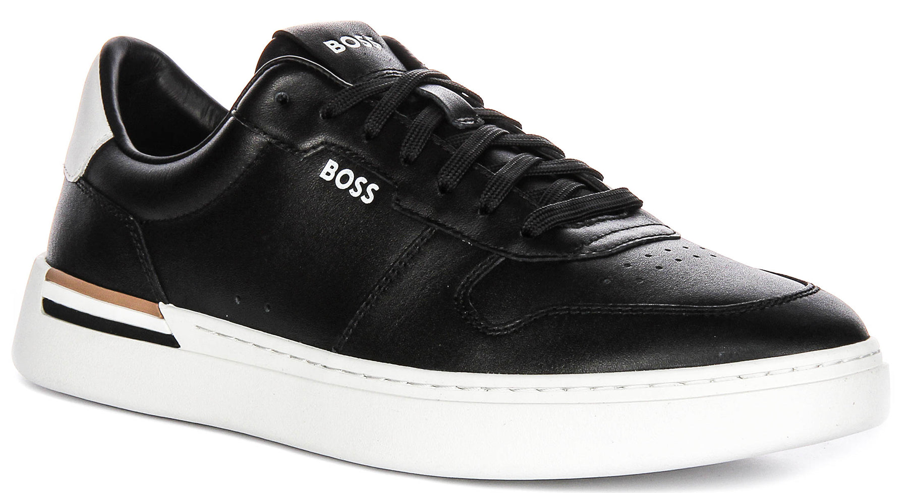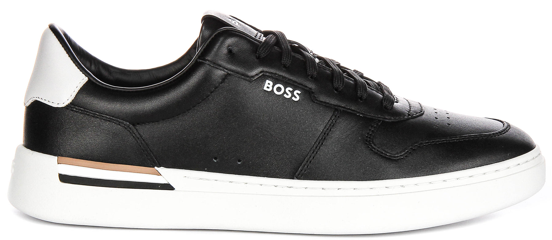 Signature BOSS detailing elevates the design. Discreet BOSS branding appears on the tongue and quarter, a refined tan-and-black insert accents the heel, and an oversized BOSS logo is moulded into the outsole for a confident touch that remains sophisticated and wearable.