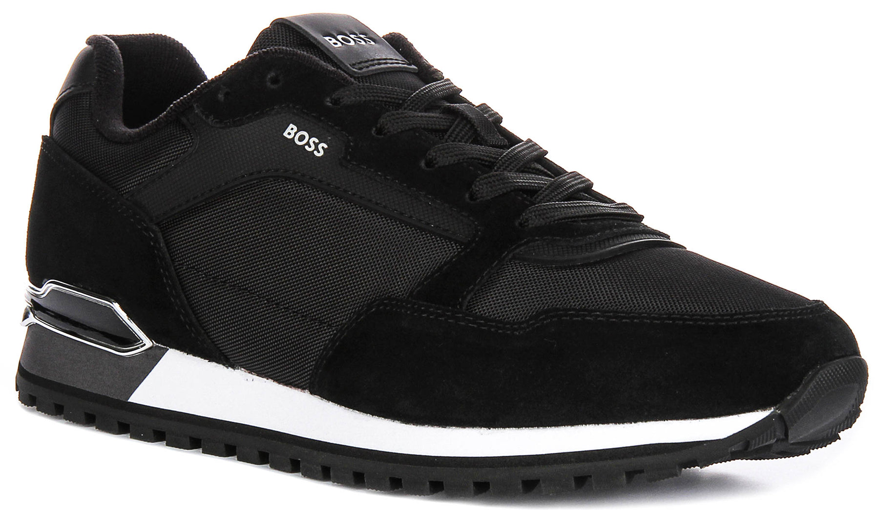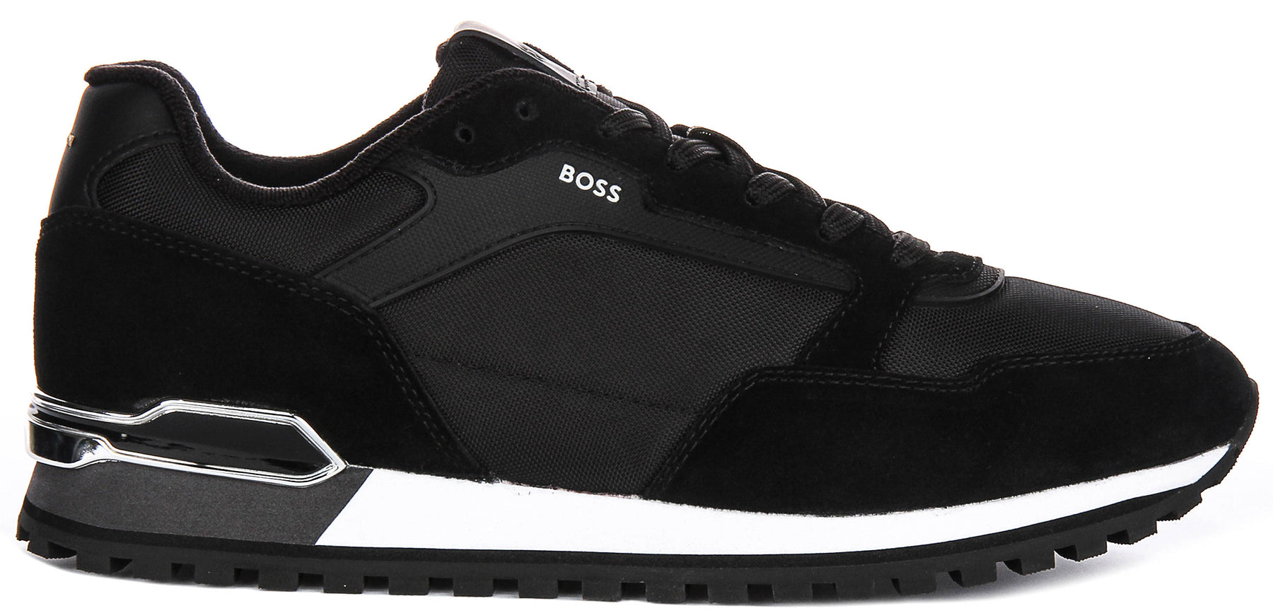 Boss Parkour L Runn Mens Trainers deliver a sleek, modern take on the retro runner. Crafted in a tonal black palette, this low-profile silhouette blends sporty lines with premium detailing for an effortlessly refined finish that pairs as well with denim as it does with athleisure.
