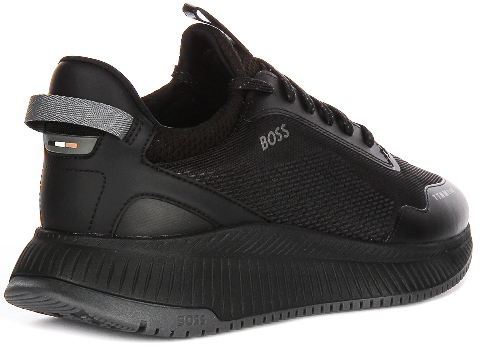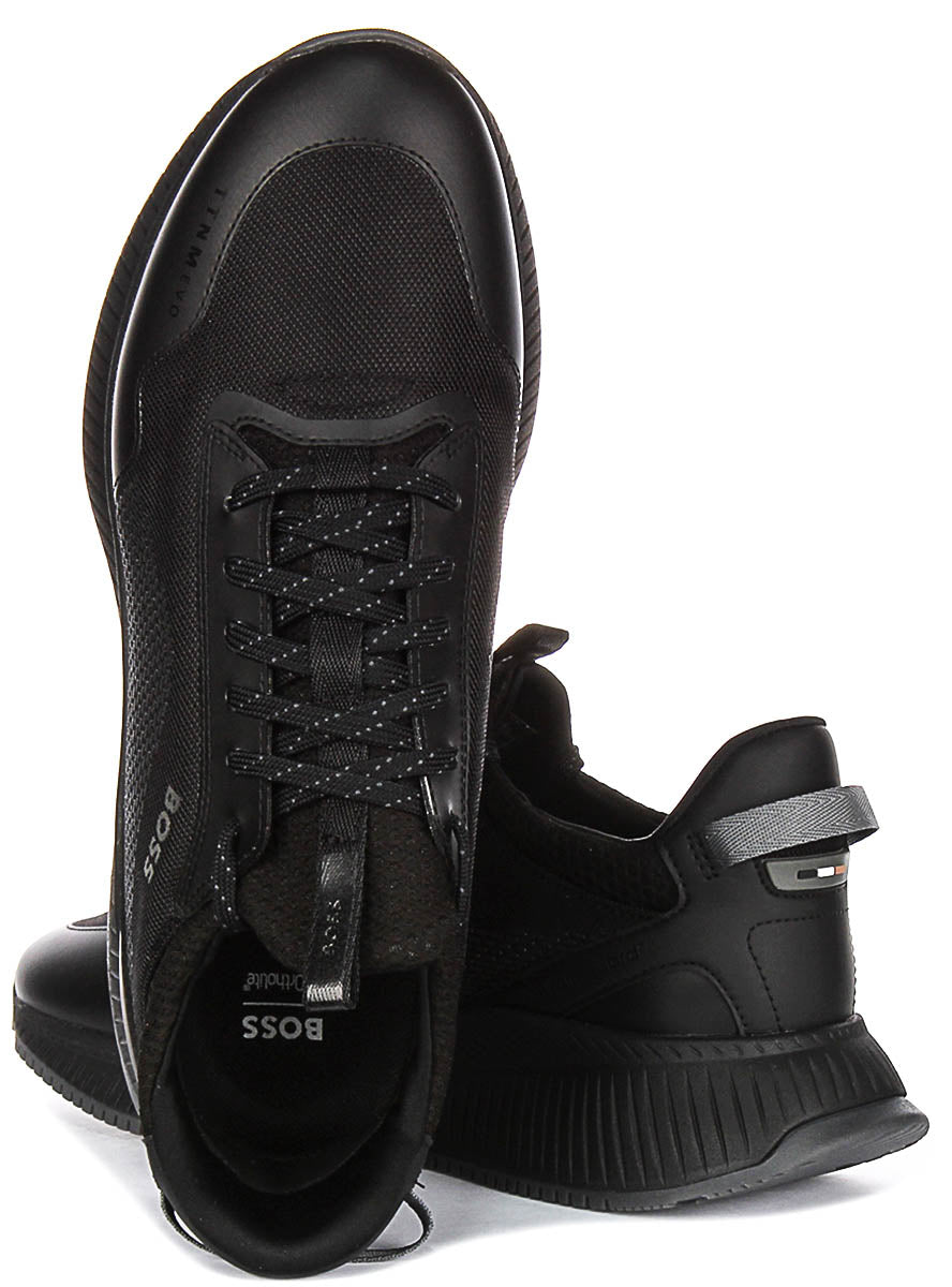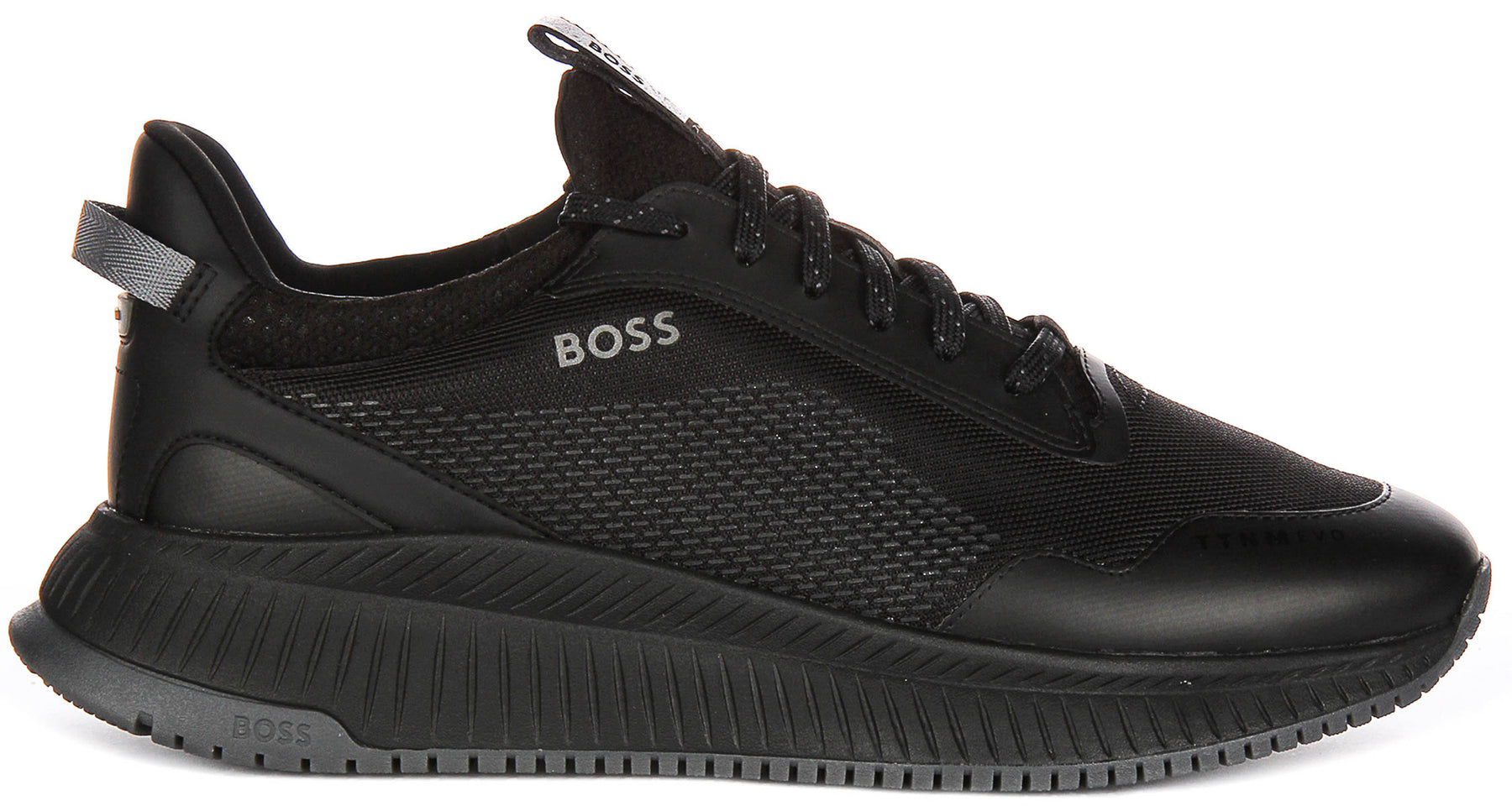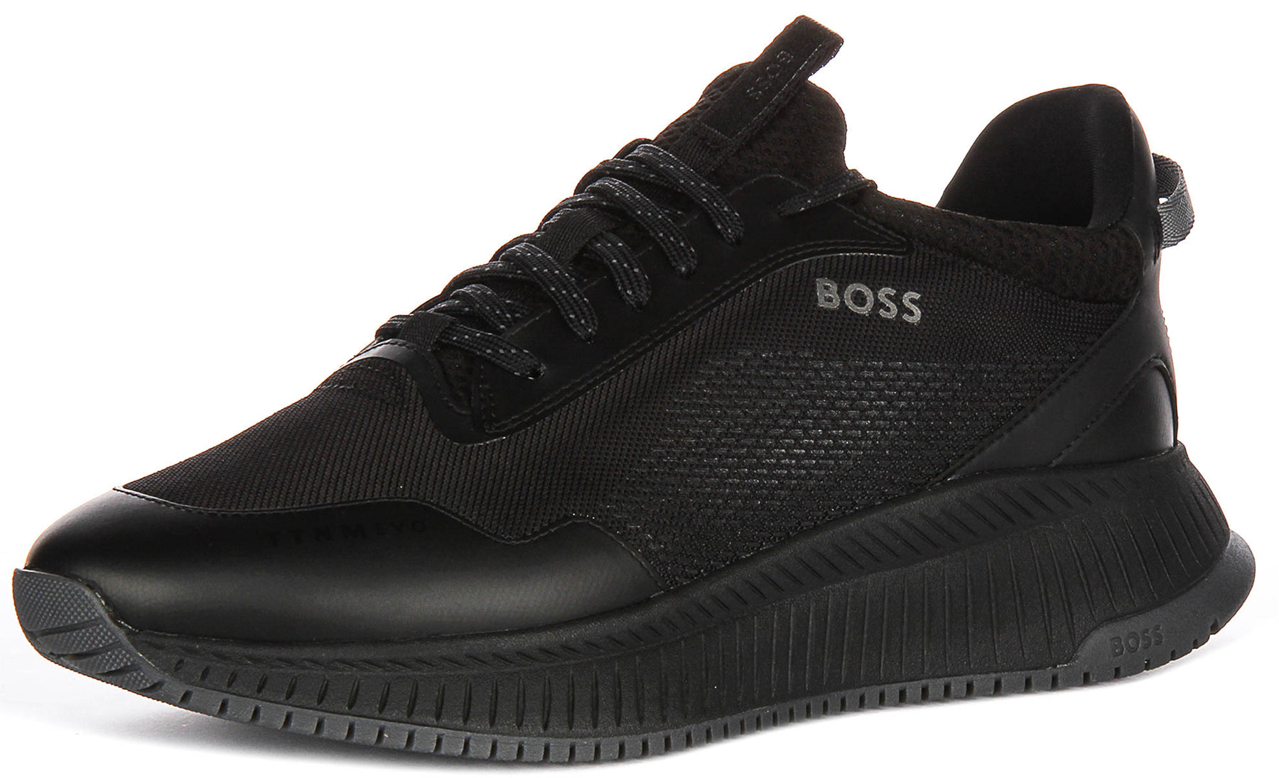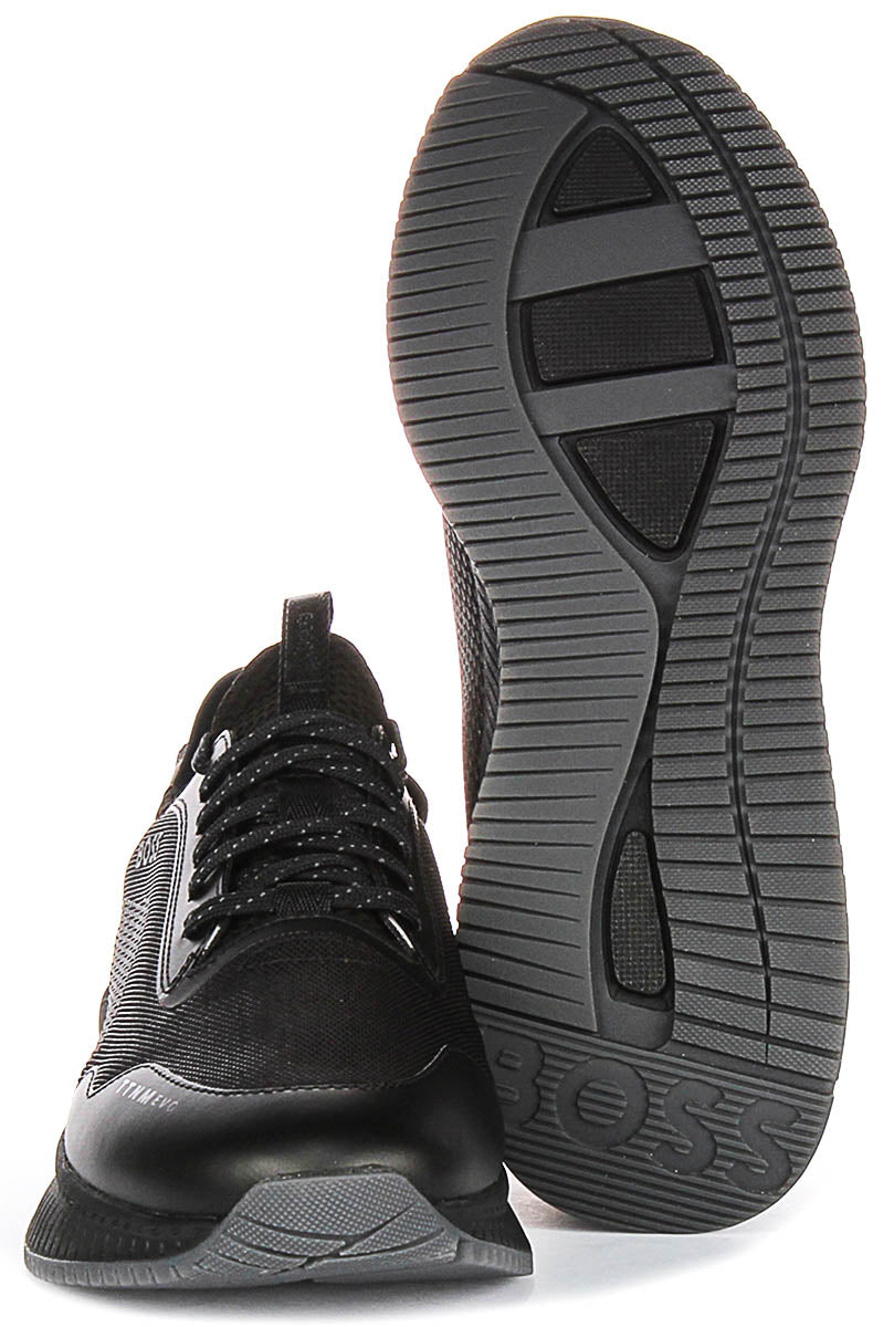 Constructed with a high-quality textile outer material, these trainers offer lightweight breathability and long-lasting comfort, making them perfect for daily wear. The all-black colourway with subtle tonal detailing gives these trainers a sharp and understated look, ideal for both casual and smart-casual occasions. The signature Boss branding on the side and tongue adds a refined touch, signalling premium craftsmanship.