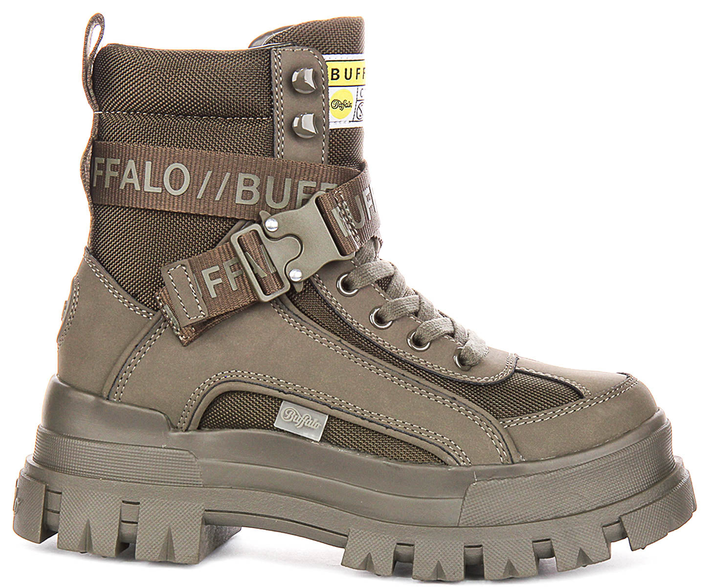 Buffalo Aspha COM1 In Khaki For Women Buckle Branding Thread Platfor
