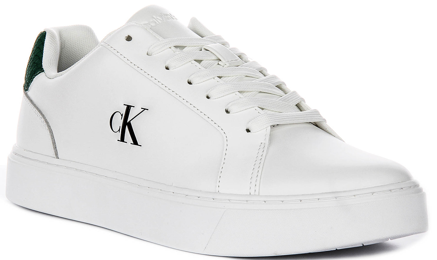 Calvin Klein Jeans Classic Cup In White Green For Men Avenue Smooth Ltr Logo Trainr