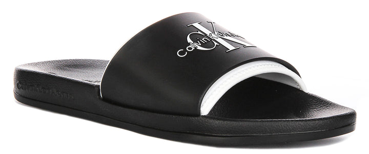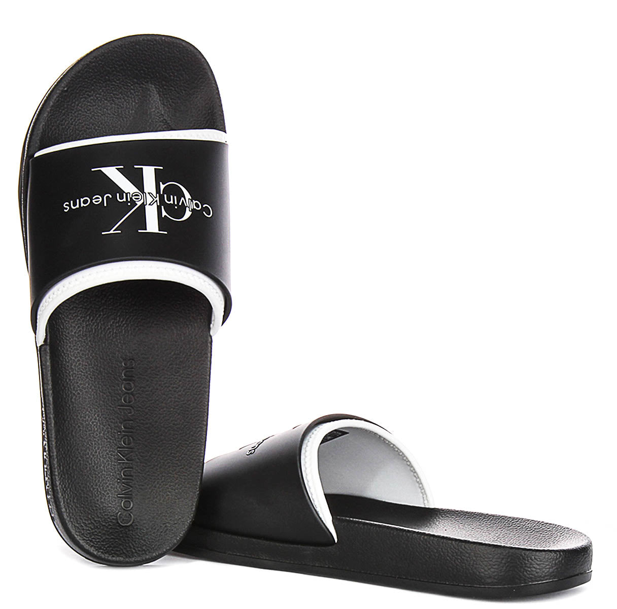 Calvin Klein Jeans Beach Slide In Black White For Men