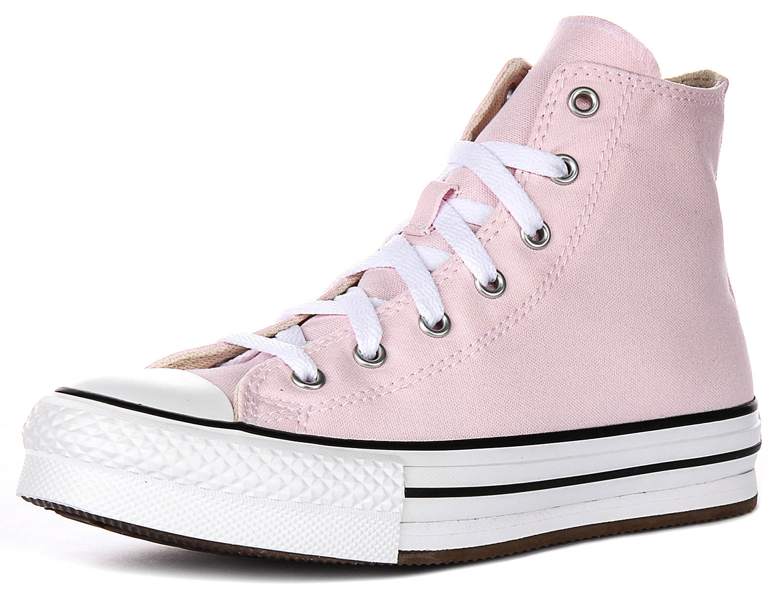 Constructed with a durable textile outer material, these trainers are lightweight and breathable, ensuring all-day comfort for active youngsters. The soft pink colour gives a fresh and playful look, while the signature white rubber toe cap and contrasting black stripe detailing around the midsole add that iconic Converse touch.