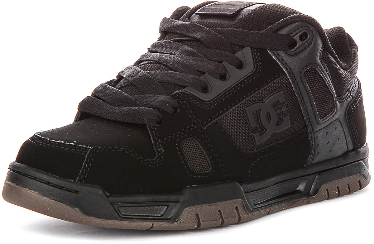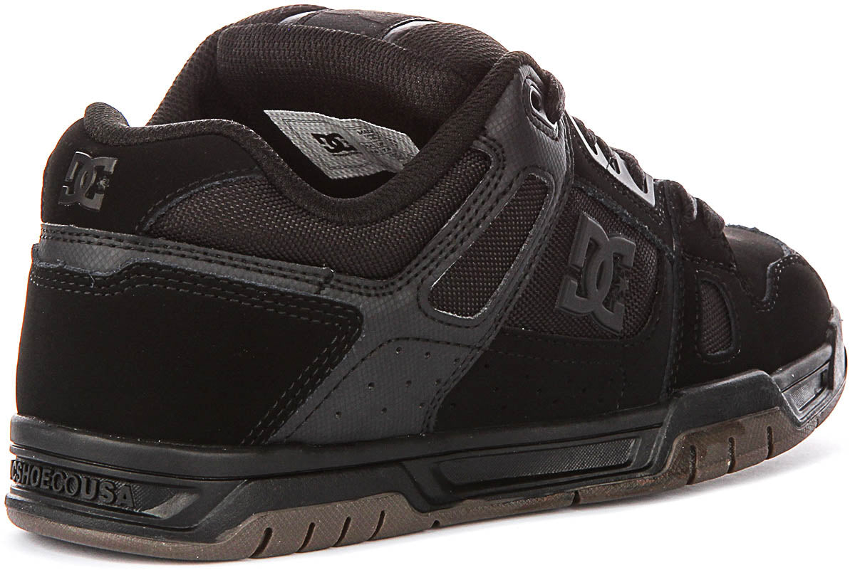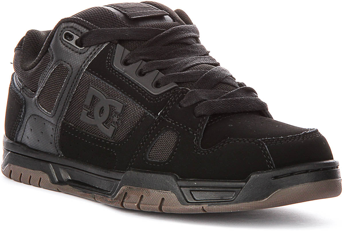 The DC Shoes STAG is a premium nubuck leather trainer designed specifically for the modern male wearer who demands both style and substance in his footwear. This striking black on black colourway delivers a sleek, versatile aesthetic that seamlessly transitions from casual streetwear to skate culture settings. The monochromatic design ensures these trainers pair effortlessly with virtually any outfit in your wardrobe, making them an essential addition to any man's shoe collection.