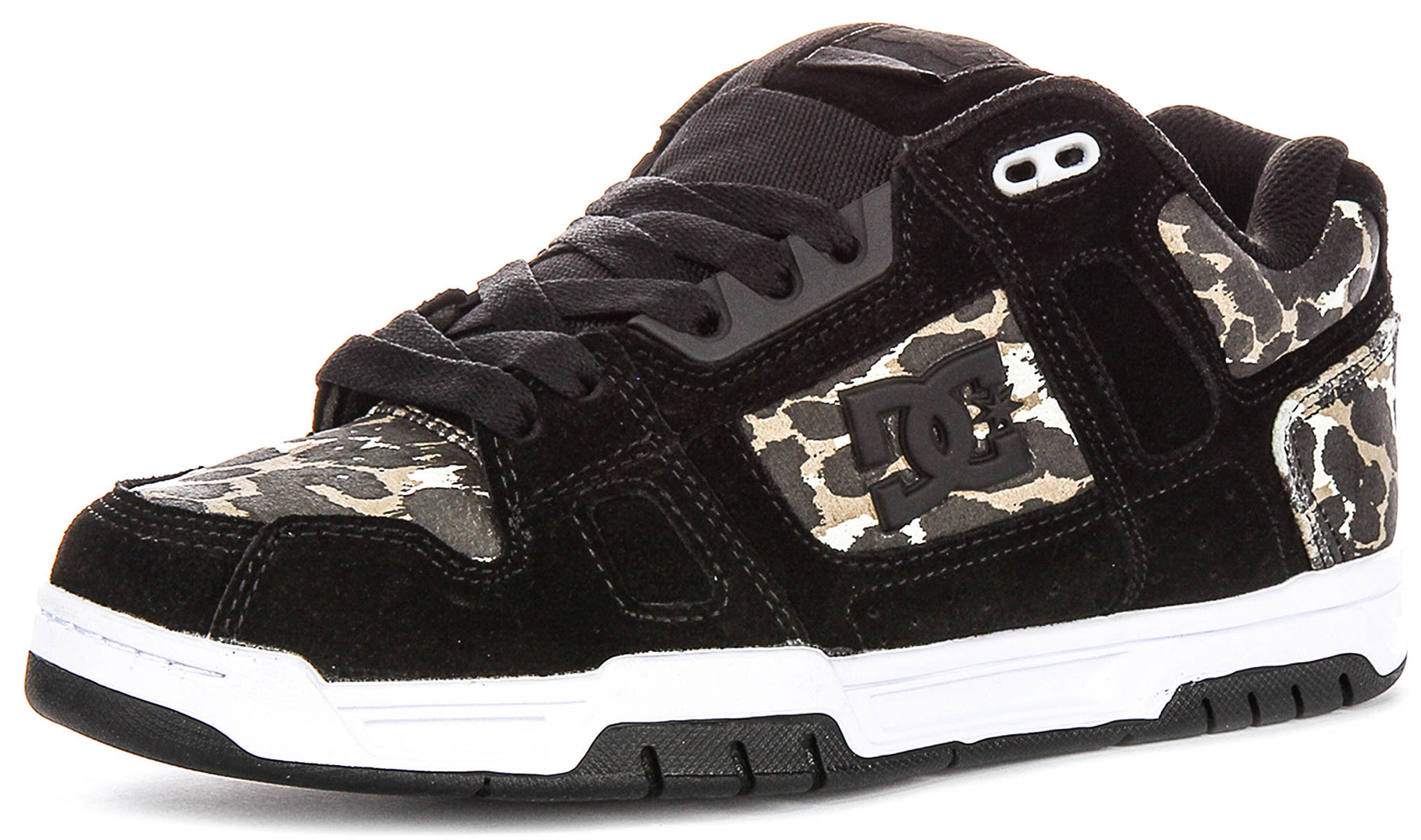 Combining classic skate shoe construction with contemporary fashion detailing, the Mens Stag Trainers are a versatile choice for any casual wardrobe. Their sturdy build and comfortable interior make them ideal for active days, while the unique leopard print ensures you make a confident style statement wherever you go. Embrace bold style and lasting comfort with this standout pair from Dc Shoes.