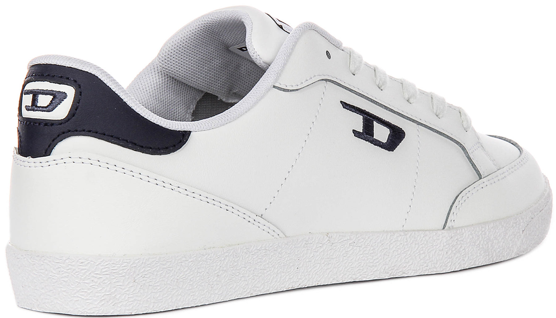 Diesel S-d-leo-low In White Navy For Men Perforated Logo Low-top Sneak
