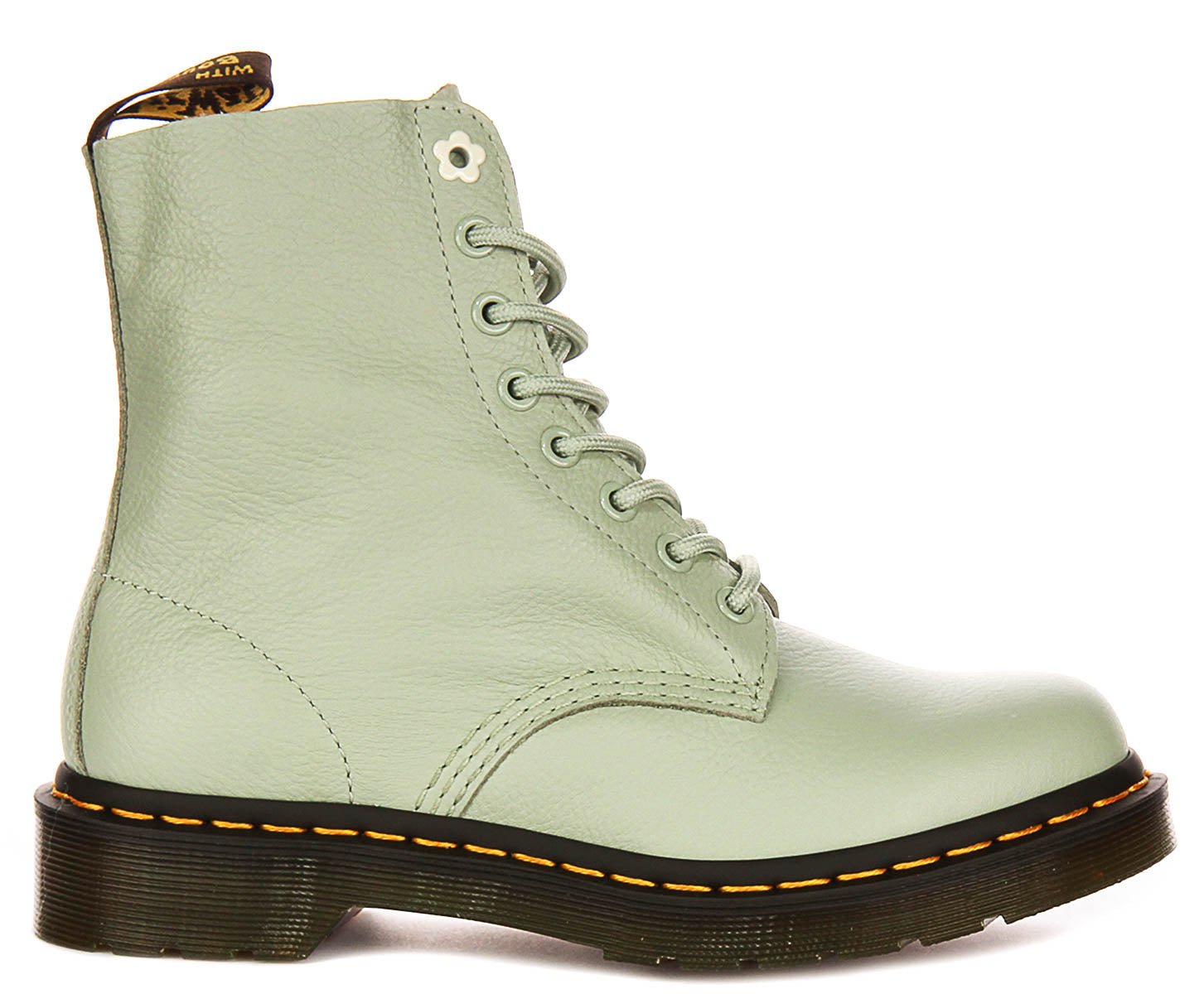 Crafted from high-quality, supple leather, these boots offer a premium feel and a distinctive textured appearance. The leather upper showcases a subtle, pebble-grain finish that adds depth and character to the overall design. The unique light green hue provides a fresh and modern twist on the classic Dr Martens silhouette, making them a standout choice for those seeking something a little different from the traditional colours. This soft, pastel shade is both eye-catching and easy to pair with a variety of outfits.