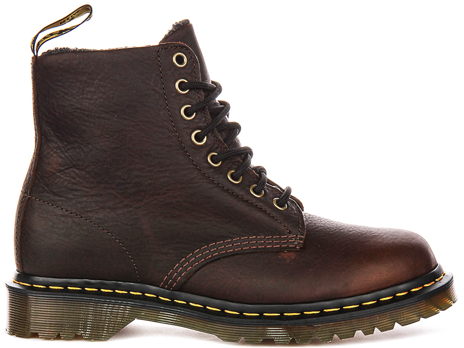 Dr Martens 1460 Pascal Wl In Dark Brown For Unisex 8 Eye Fleece Ln Grizzly Lthr