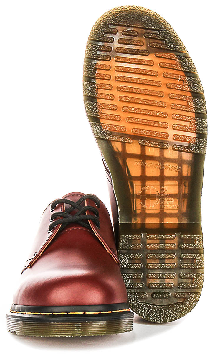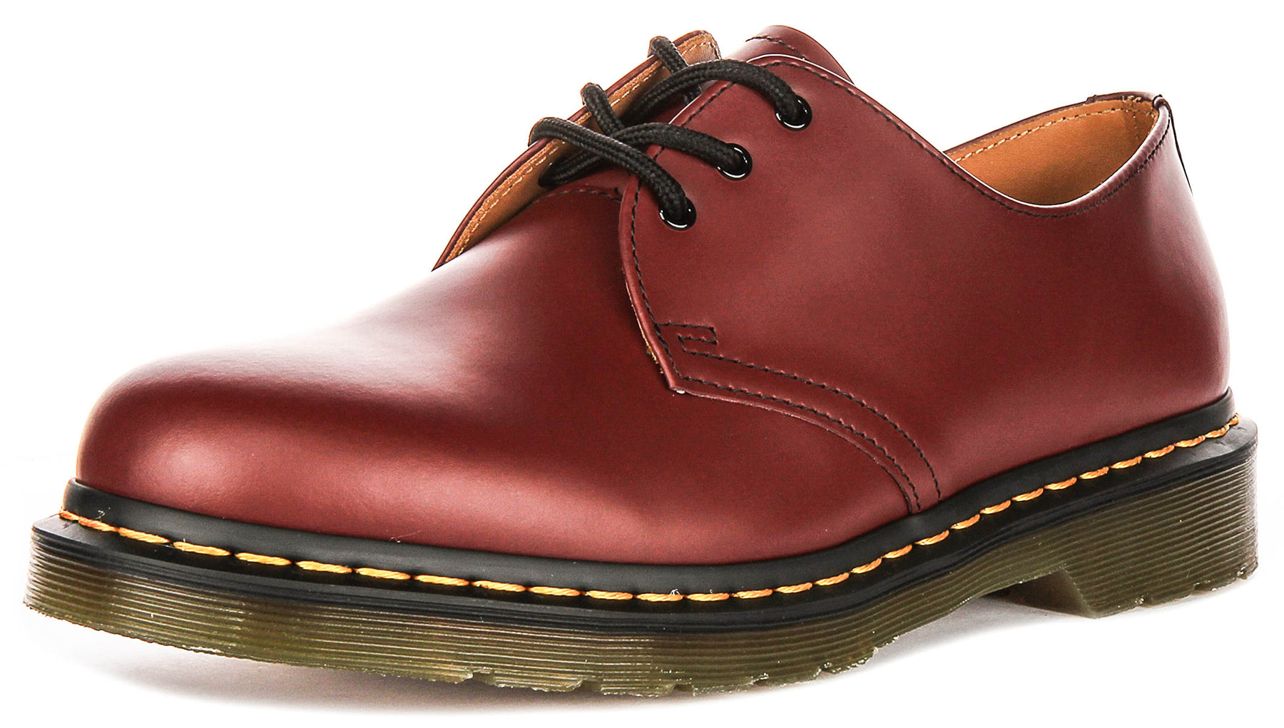 Beyond their stylish appearance, the Dr Martens 1461 Smooth shoes are engineered for comfort and longevity. They are built upon the signature Dr Martens AirWair sole, which is not only incredibly comfortable for all-day wear but also provides excellent grip and is resistant to slips. The sole is subtly translucent with a light brown tint, adding a contemporary touch to the classic design. These shoes are more than just footwear; they are an investment in enduring style and comfort that will stand the test of time.