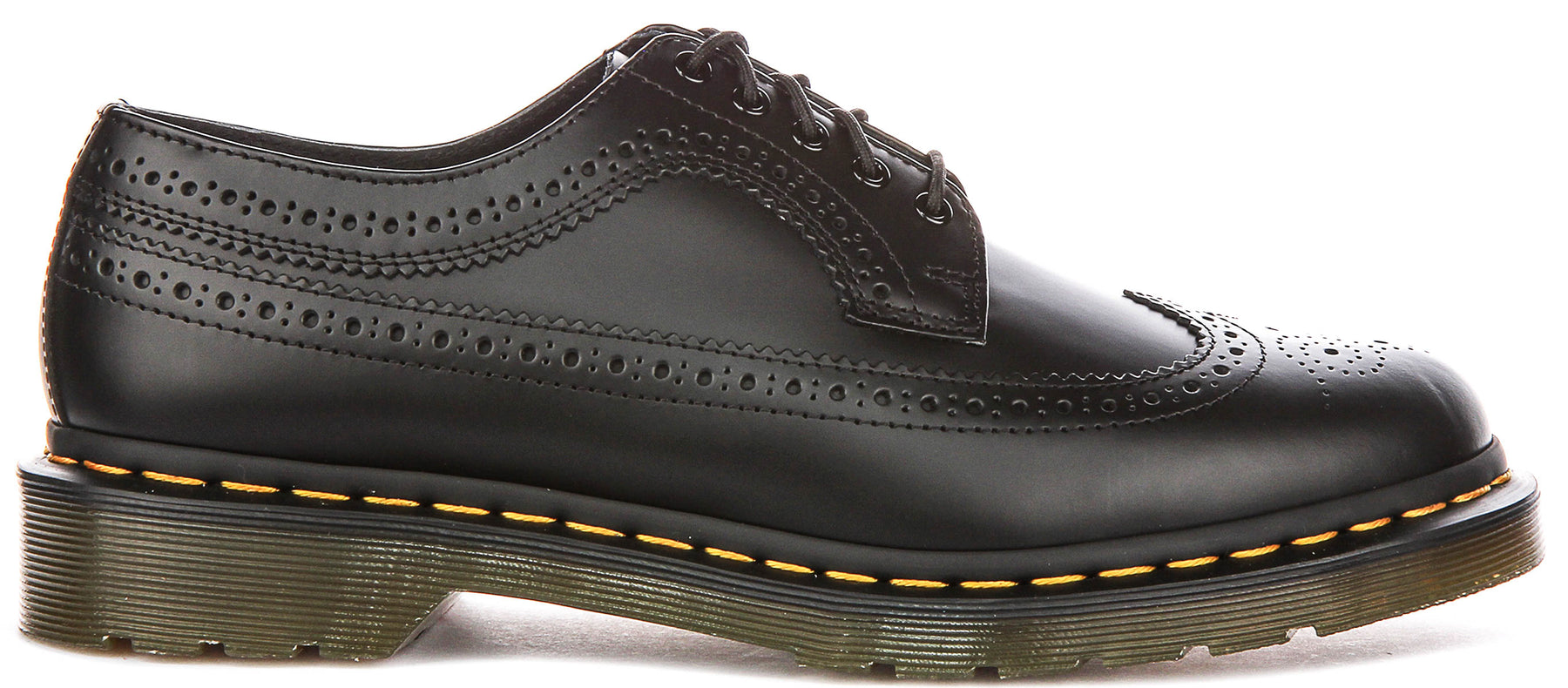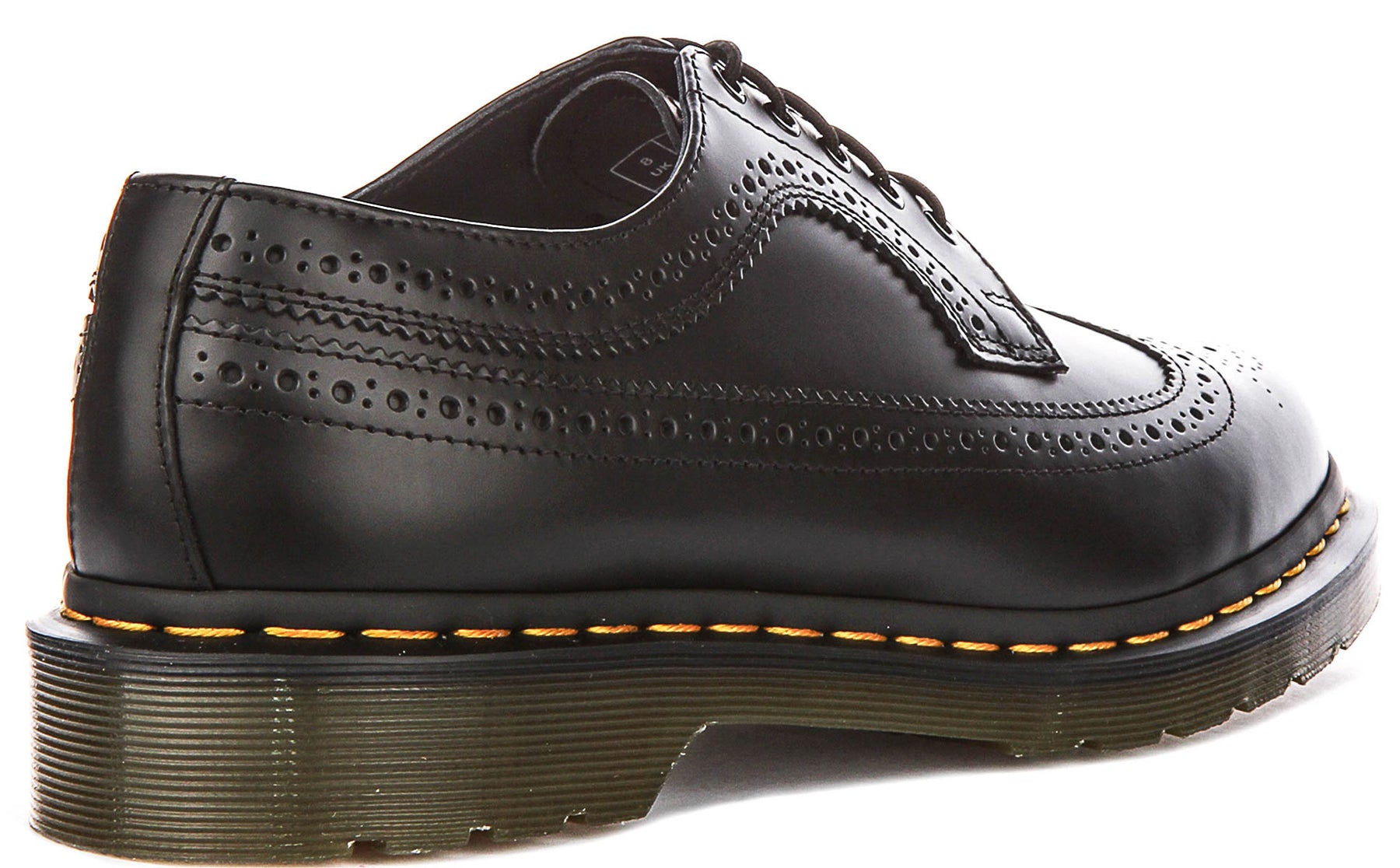 The most distinctive feature of the 3989 YS is its intricate brogue detailing, which showcases traditional craftsmanship at its finest. The upper features elaborate perforated patterns and decorative stitching that create visual interest across the toe cap and sides of the shoe. These carefully placed perforations form elegant scalloped edges and geometric designs, adding a refined touch that elevates the shoe beyond basic oxford styling. The attention to detail demonstrates Dr Martens' commitment to quality construction and aesthetic appeal.