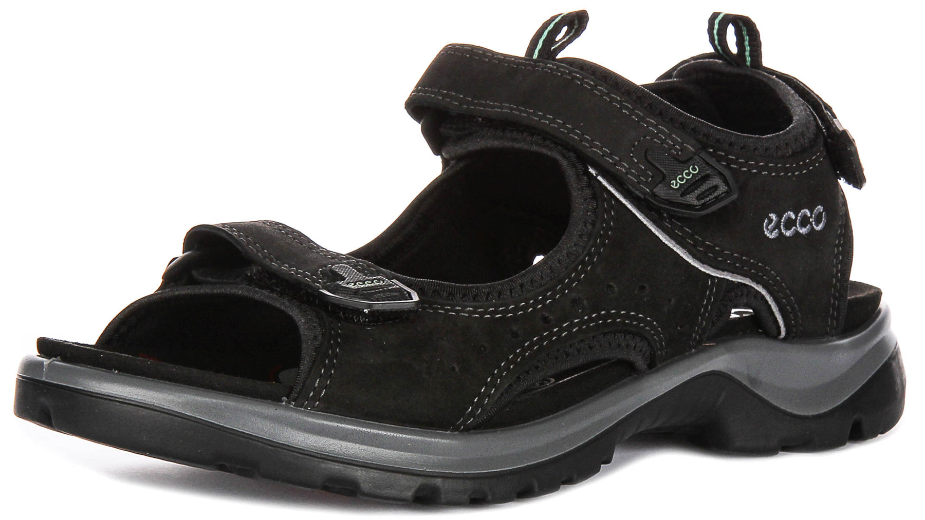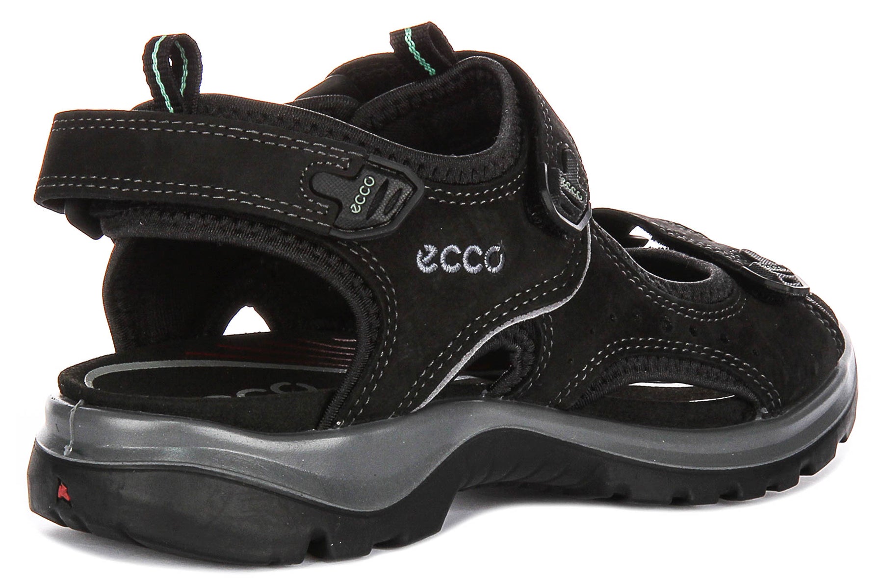 Presented in a versatile black colourway with subtle contrast stitching and Ecco branding, these sandals easily pair with any casual or outdoor ensemble. The robust rubber outsole features a tread pattern designed for reliable traction on a variety of surfaces, making these sandals ideal for walking, hiking, or everyday wear.