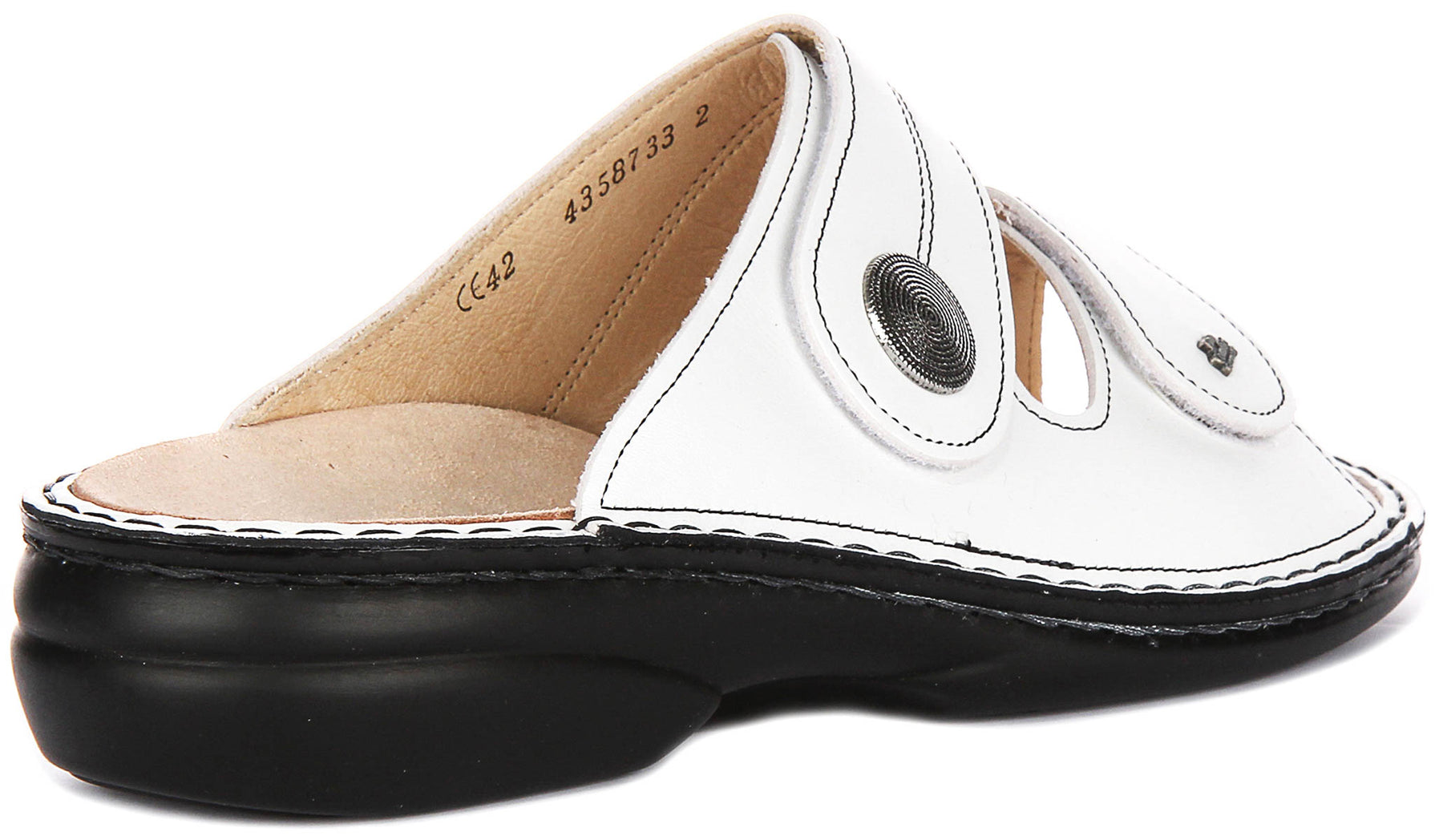 Crafted with a premium leather outer material, the Sansibar sandals promise lasting durability and a supple feel against the skin. The pristine white colour, accented by neat contrast stitching, gives these sandals a fresh and versatile look that complements any casual summer outfit. Subtle metallic embellishments and Finn Comfort branding add a touch of sophistication to the classic silhouette.