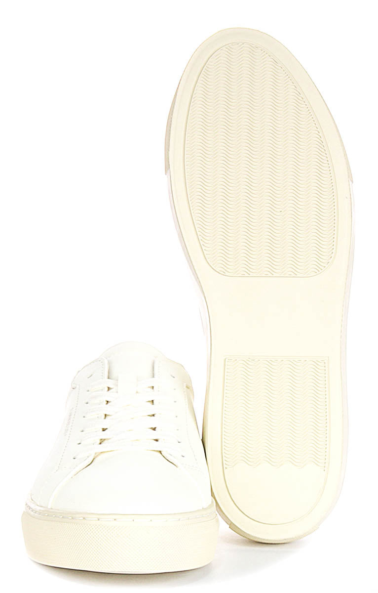 Crafted with a premium vegan outer material, the Hampton Court trainers offer an ethical alternative to traditional leather footwear, without compromising on durability or comfort. The crisp white upper is elegantly contrasted by a sleek black detail at the heel, creating a minimalist yet distinctive look that pairs well with any casual or smart-casual outfit.