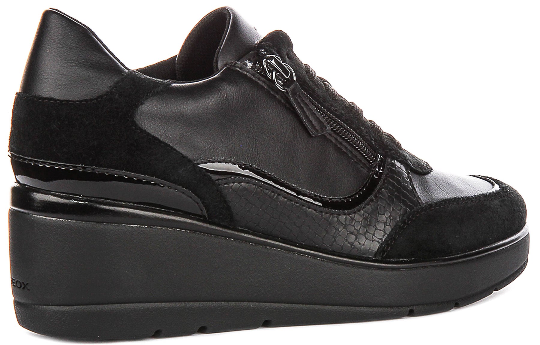 Geox D Ilde A In Black For Women Flatform Lace Up Side Zip Dt