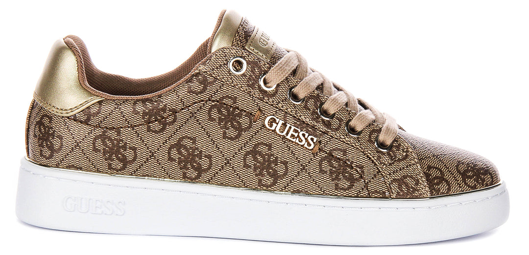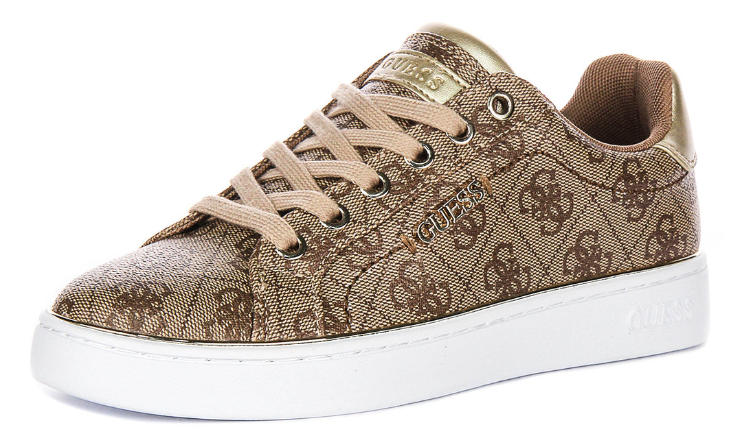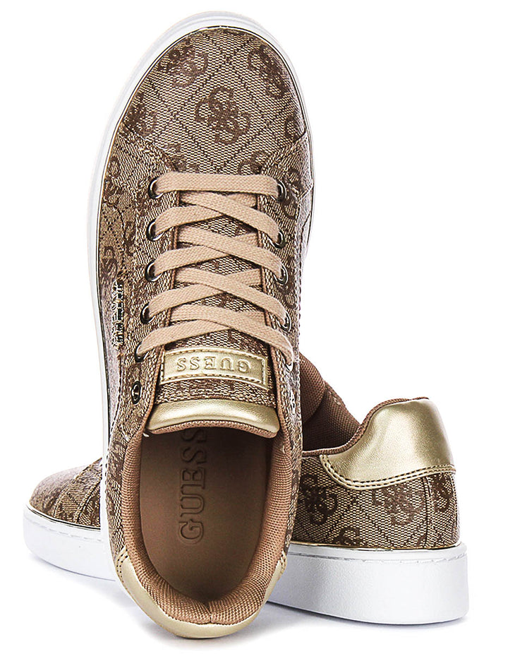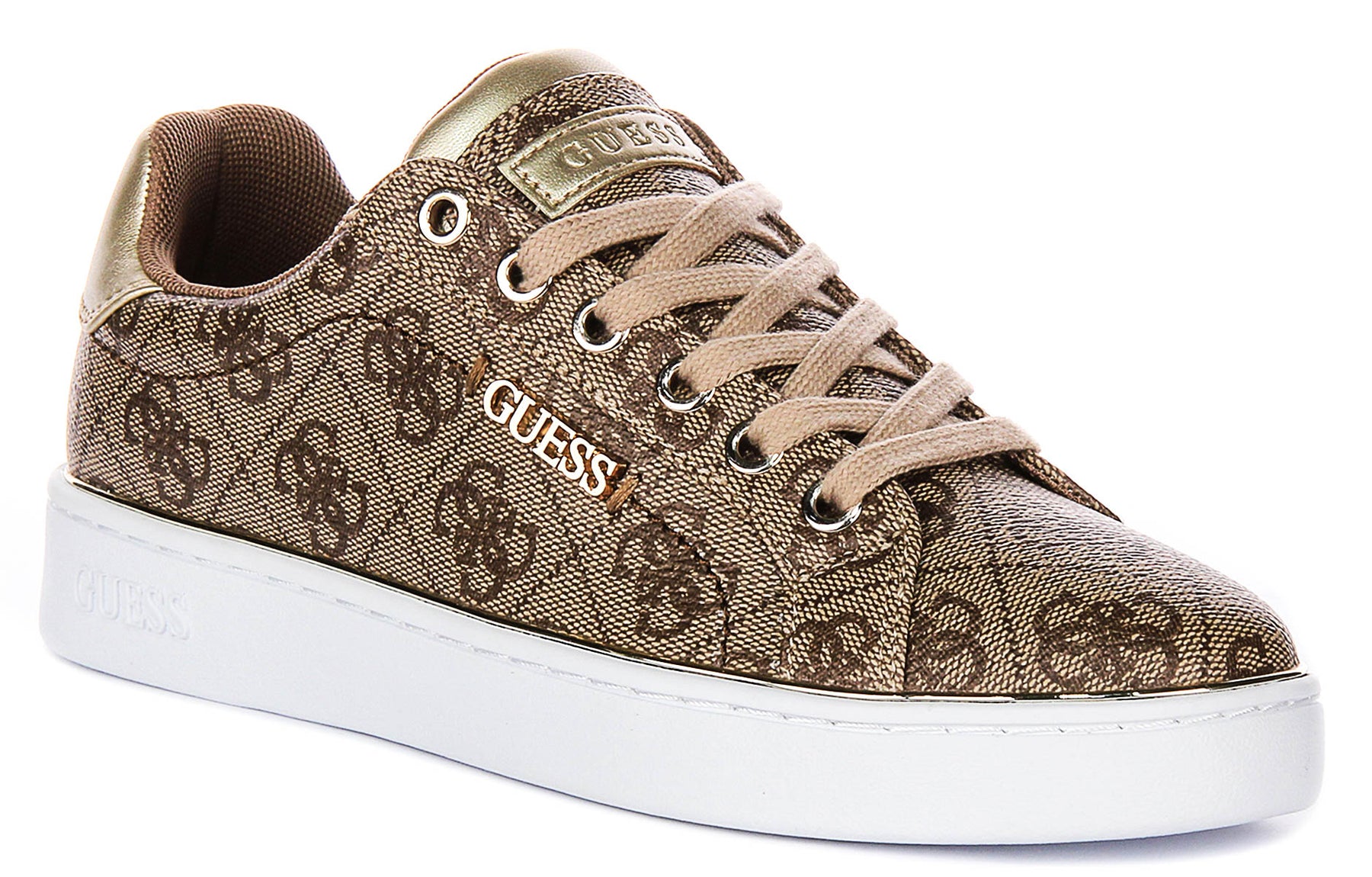 These stylish trainers are crafted from high quality faux leather, providing a chic and cruelty free alternative to traditional leather. The all over logo design in a sophisticated beige hue adds a statement making element to your ensemble, ensuring you stand out in any crowd. The trainers feature a comfortable and cushioned insole, offering excellent support for all day wear.