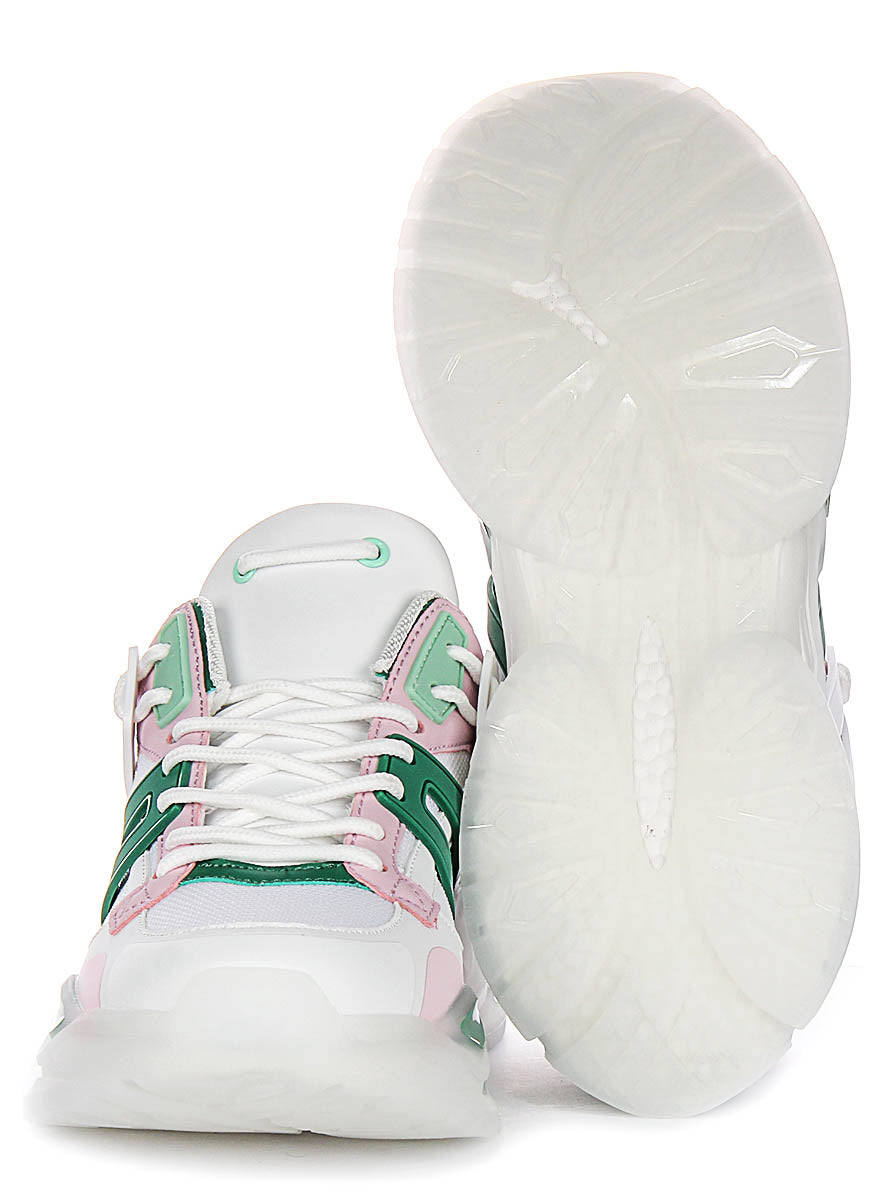 The chunky sole is both a stylish and functional highlight. With a sculpted design, it offers excellent support and cushioning, ideal for long walks or energetic activities. The trainers are equipped with a padded tongue and collar, ensuring a snug and comfortable fit.