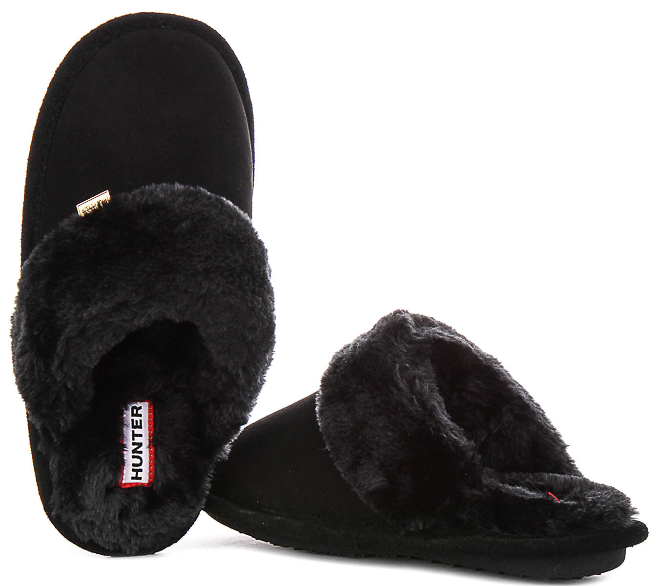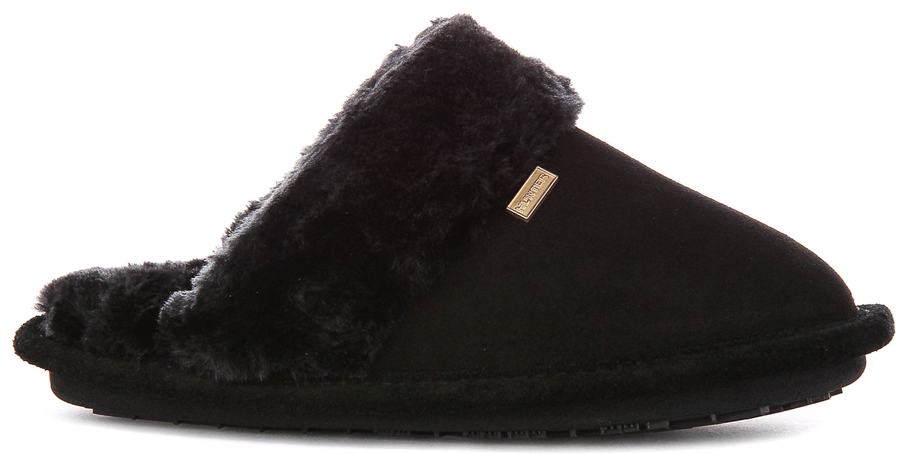 Hunter W Mule Slipper In Black For Women Moccasin Slip With Sherpa Colr