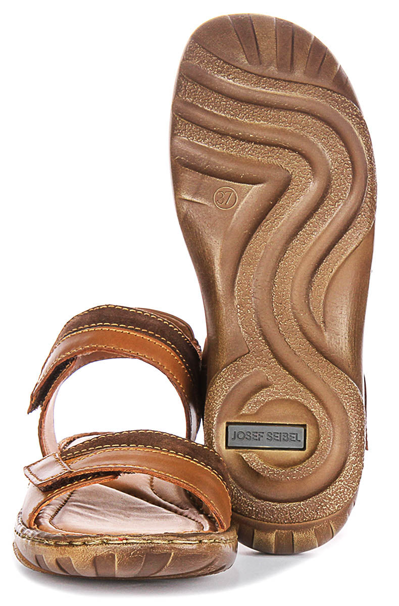 The Josef Seibel Debra 19 leather sandals are stylish and practical footwear designed for women, providing comfort and durability. These sandals are crafted using high-quality leather for the outer material, ensuring a sophisticated appearance and long-lasting wear. Their neutral brown tone makes them versatile, matching effortlessly with a variety of casual and semi-casual outfits.