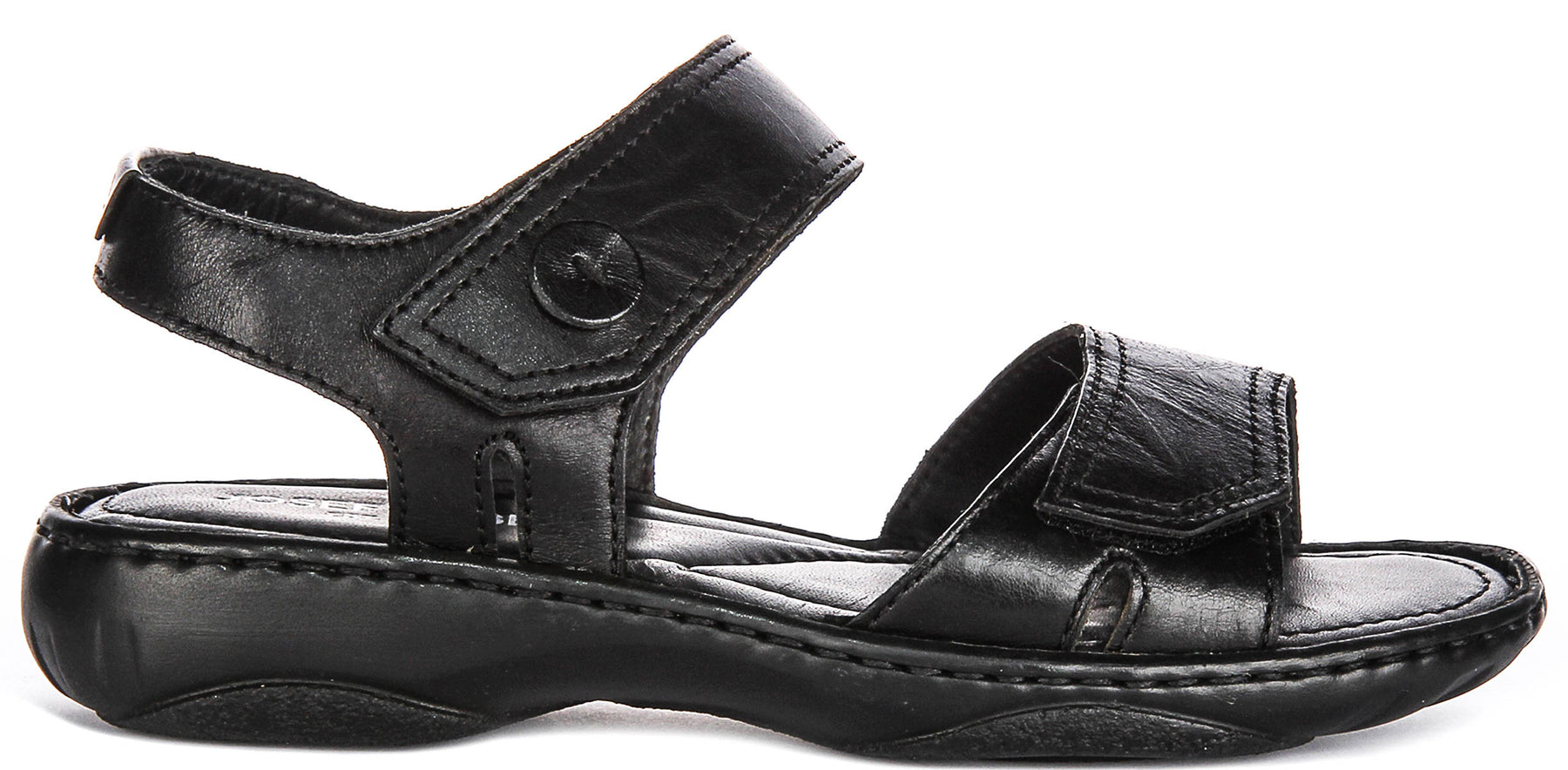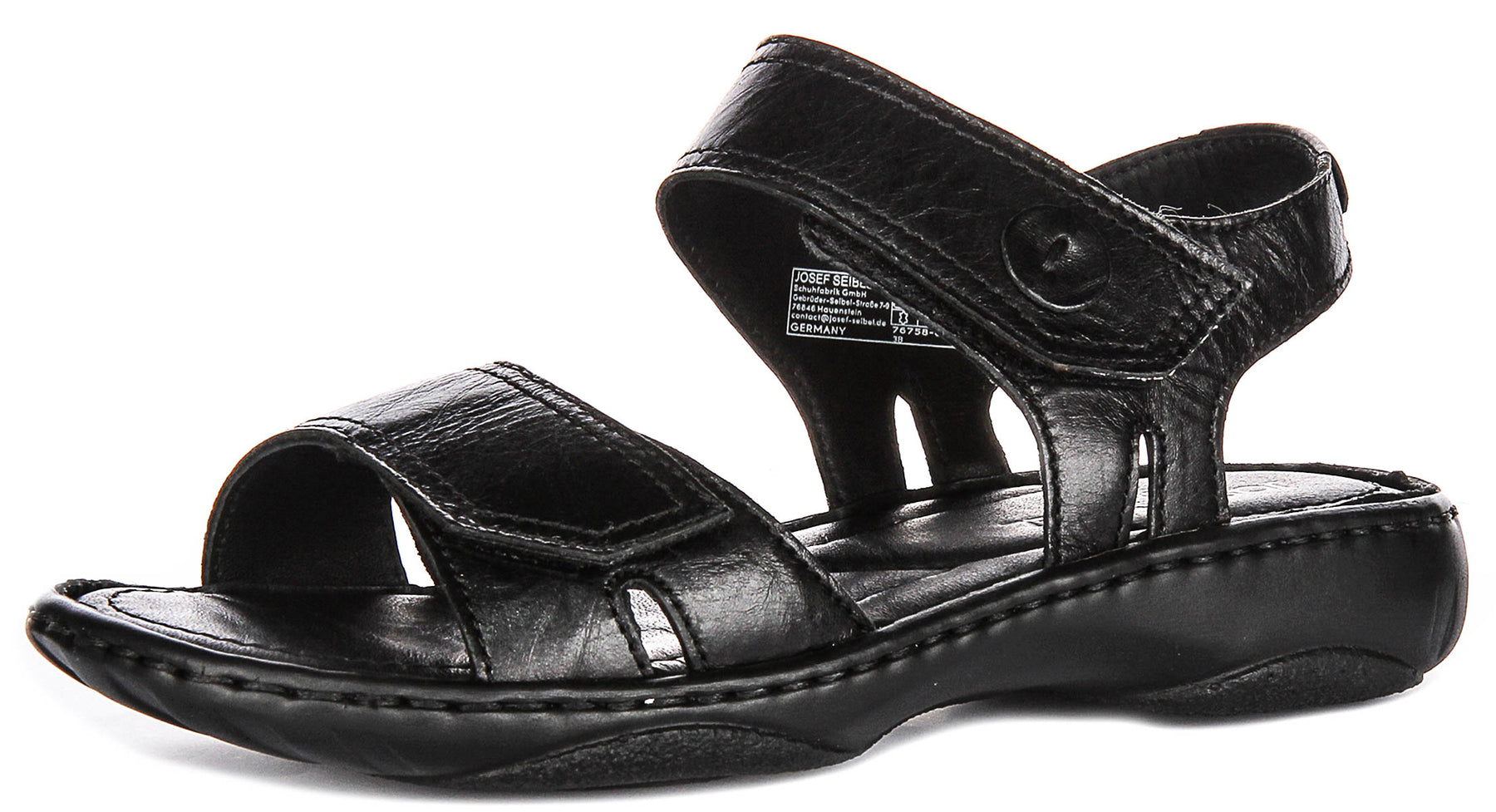 Key details: Brand: Josef Seibel. Product name: Debra 58. Product type: Sandals. Outer material: Leather. Target gender/group: Womens. Colour: Black (colour code: Black). Closure: Touch-fastening straps. Footbed: Cushioned. Outsole: Lightweight, flexible with grip. Toe: Open. Heel: Low profile for everyday comfort.