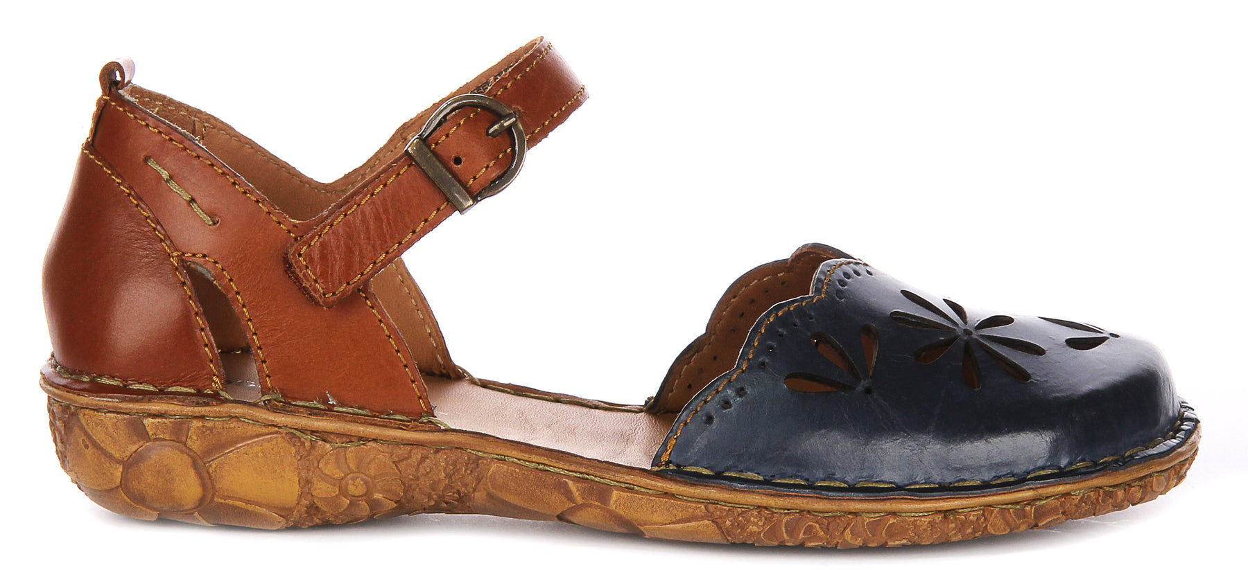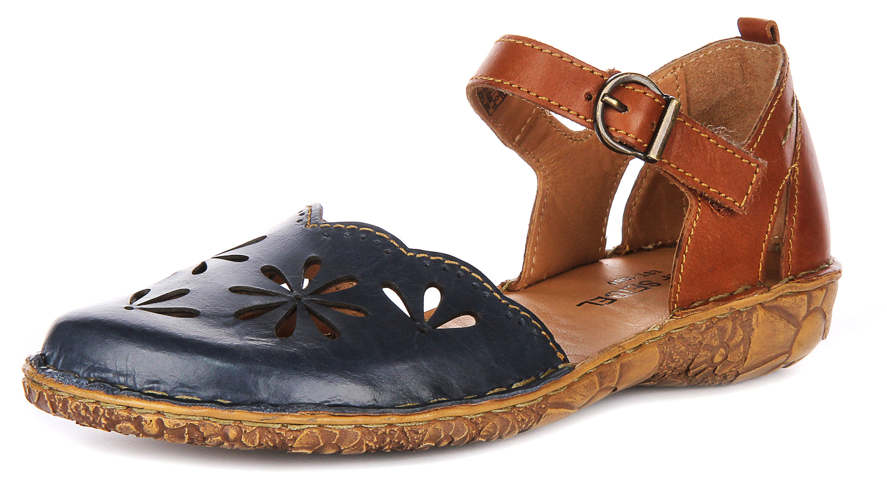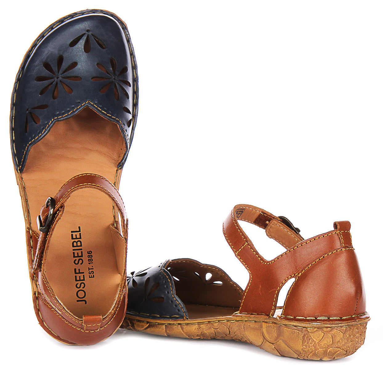 The Josef Seibel Rosalie 04 Women's Leather Sandals are a stylish and practical choice for everyday wear, blending comfort with an elegant, handcrafted design. These sandals are expertly made using premium-quality leather for the outer material, ensuring both durability and a soft touch that moulds to the natural shape of your foot over time. The smooth leather upper is accented with beautifully intricate floral cut-out details, adding a subtle flair of femininity and uniqueness to the design. The two-tone colour scheme, featuring a vibrant navy-blue front and rich brown rear, creates a versatile look that pairs wonderfully with casual summer outfits or dressier ensembles.