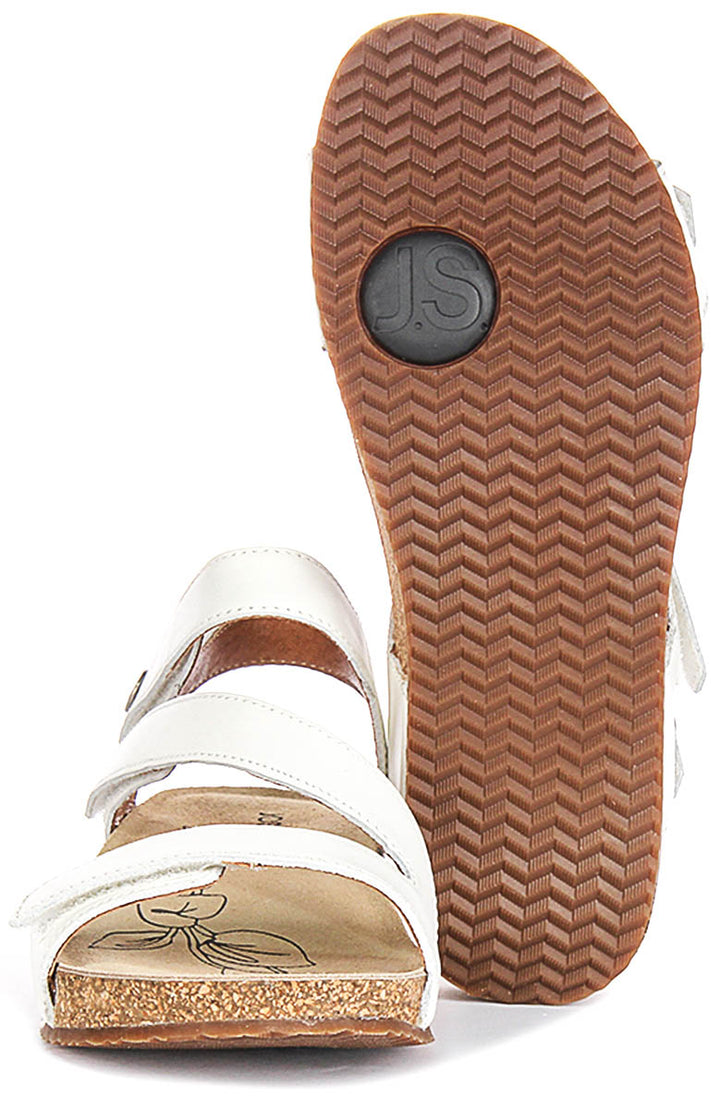 The sandal features a triple-strap design that ensures a secure yet adjustable fit. Two straps go across the instep, and one encircles the back of the foot, all detailed with a metallic Josef Seibel logo button for a touch of elegance. The straps are adjustable, allowing for personalised comfort while enhancing the sandal's secure fit during wear.