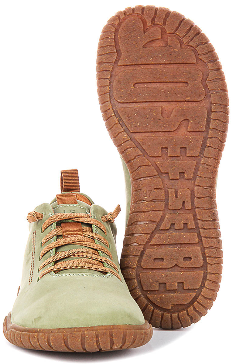 The Josef Seibel WYNONA 06 is a distinctive women's leather shoe that combines contemporary style with exceptional comfort and durability. This lace-up trainer showcases a beautiful soft sage green leather upper that exudes understated elegance and versatility, making it an ideal choice for women seeking a shoe that transitions effortlessly from casual everyday wear to more relaxed social occasions.