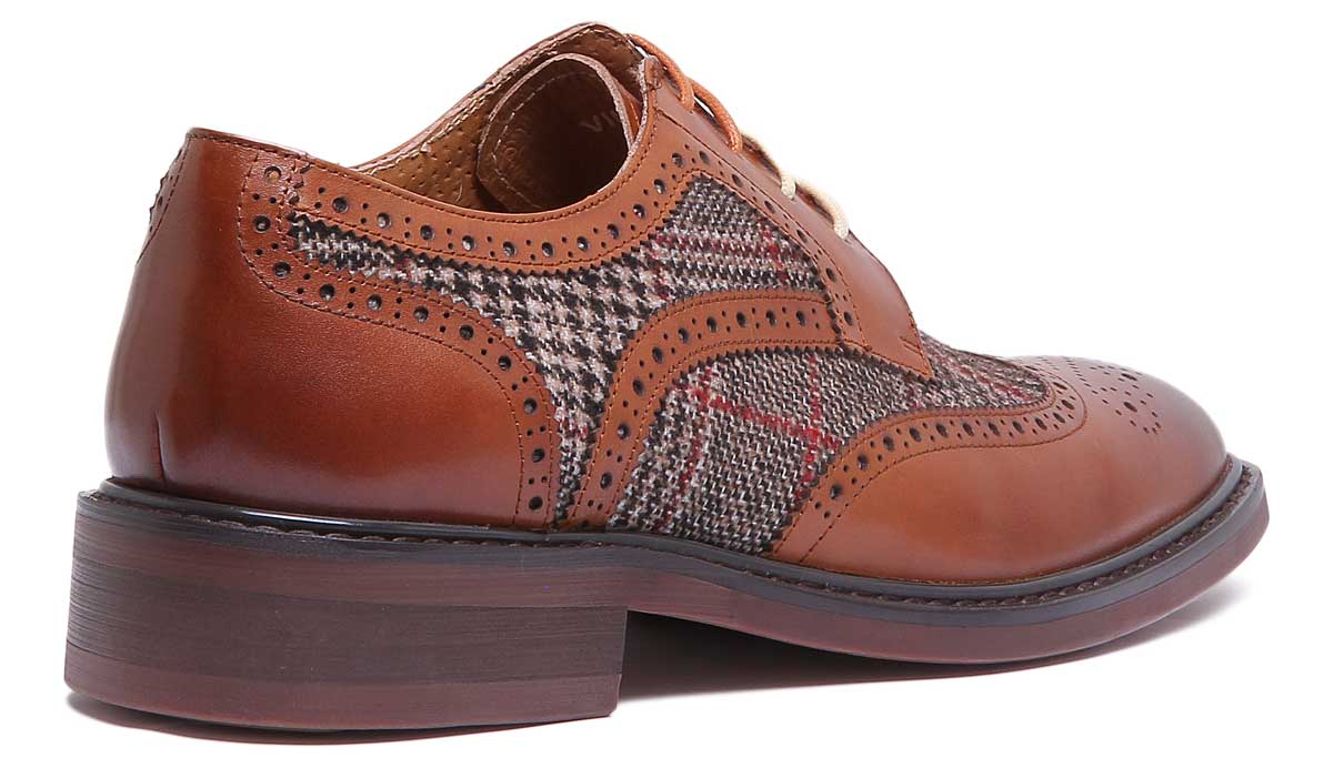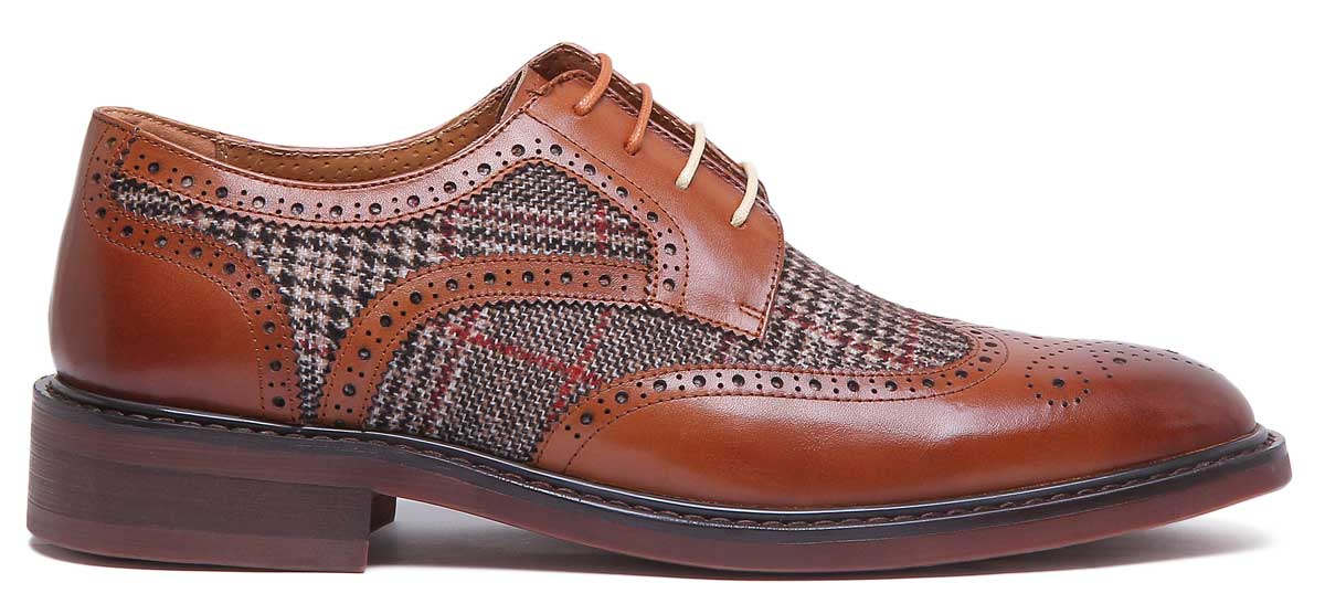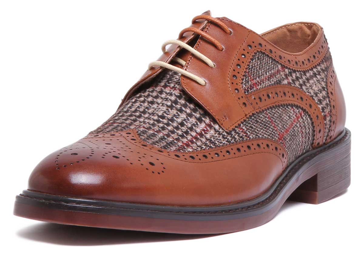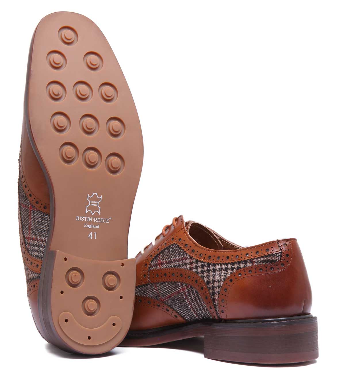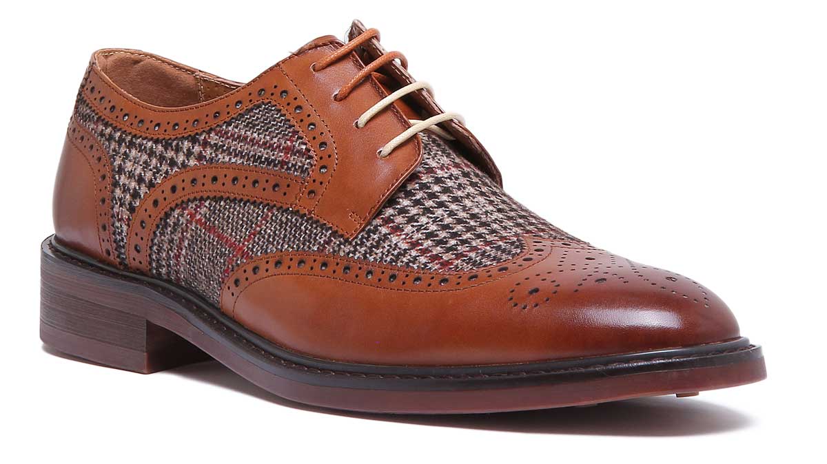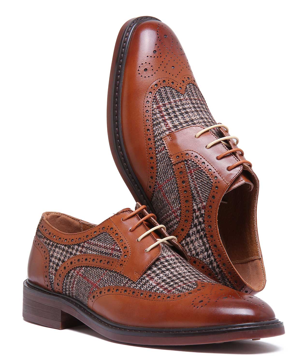 An eye-catching lace-up brogues from Justin Reess. These shoes have a beautiful soft leather upper with contrasting panels in tweed between traditional brogue detailing. It features leather lining and sole for comfort and rubber sole provides good grip to most of the surface. They are perfect when you need to dress for that special occasion but are versatile enough to look good with your jeans and more casual attire.