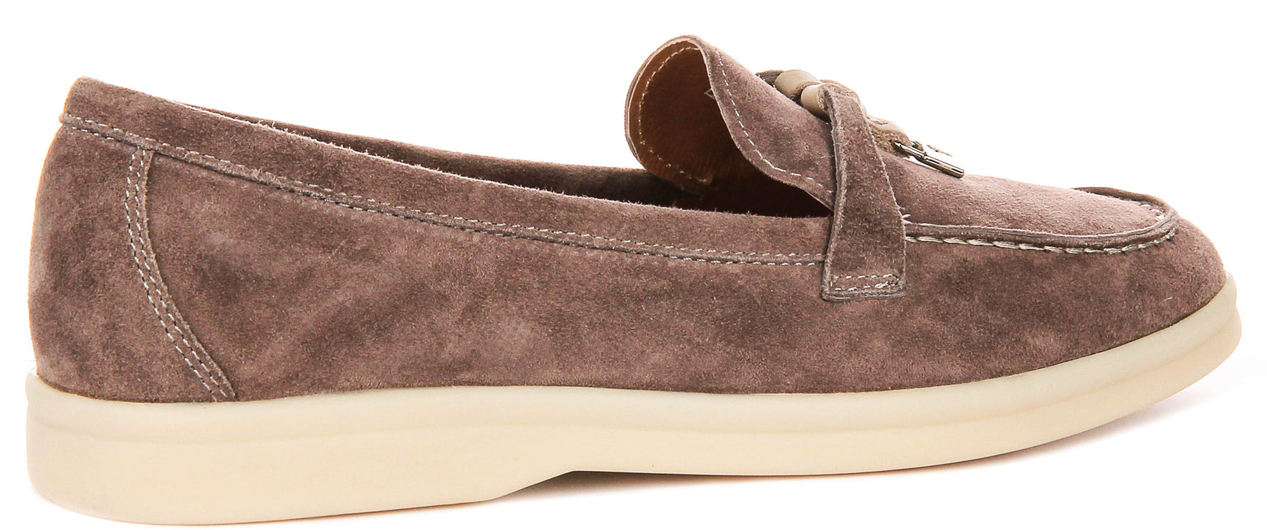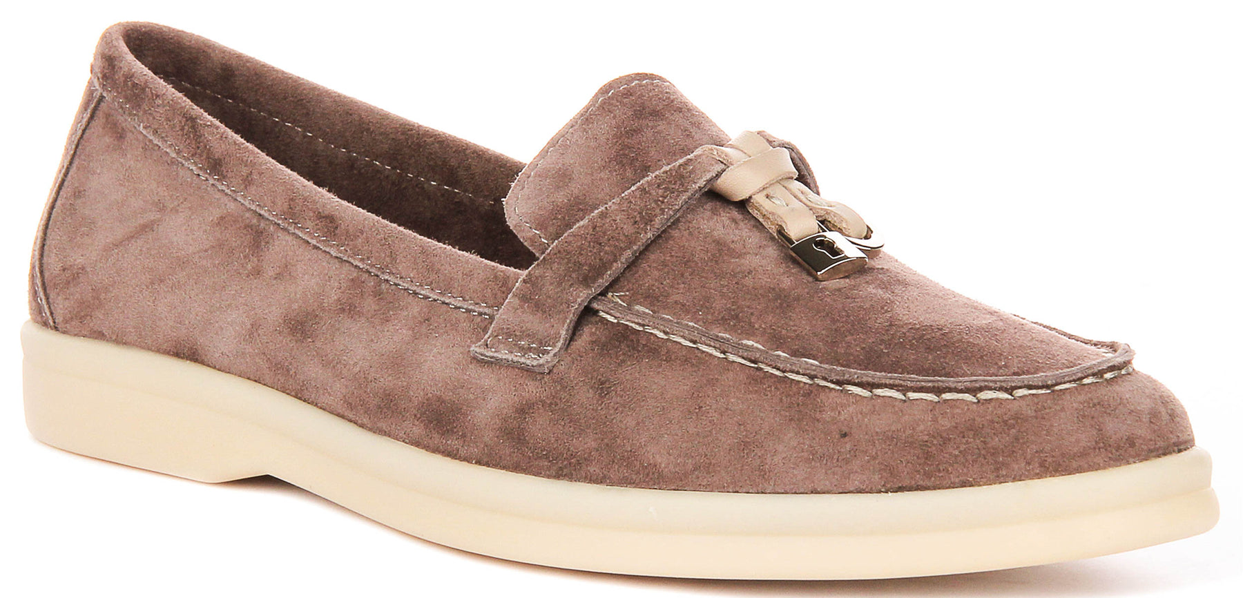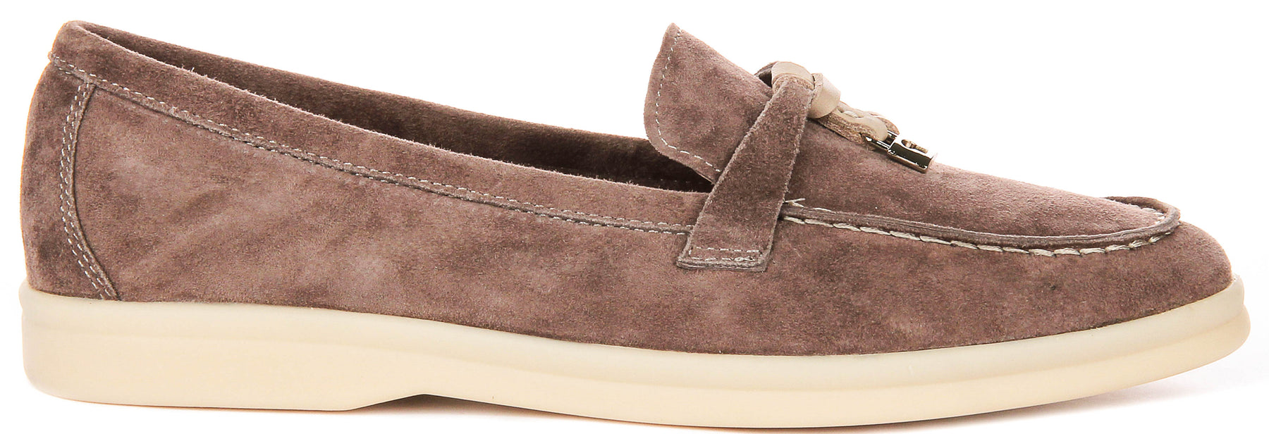 Designed specifically for women, the Emma shoes feature a gentle, muted taupe colour that complements a wide variety of outfits, from smart trousers to jeans or dresses. The neutral shade is highlighted by subtle contrast stitching and a decorative leather strap adorned with a metallic accent, adding a touch of chic detail to the overall design.