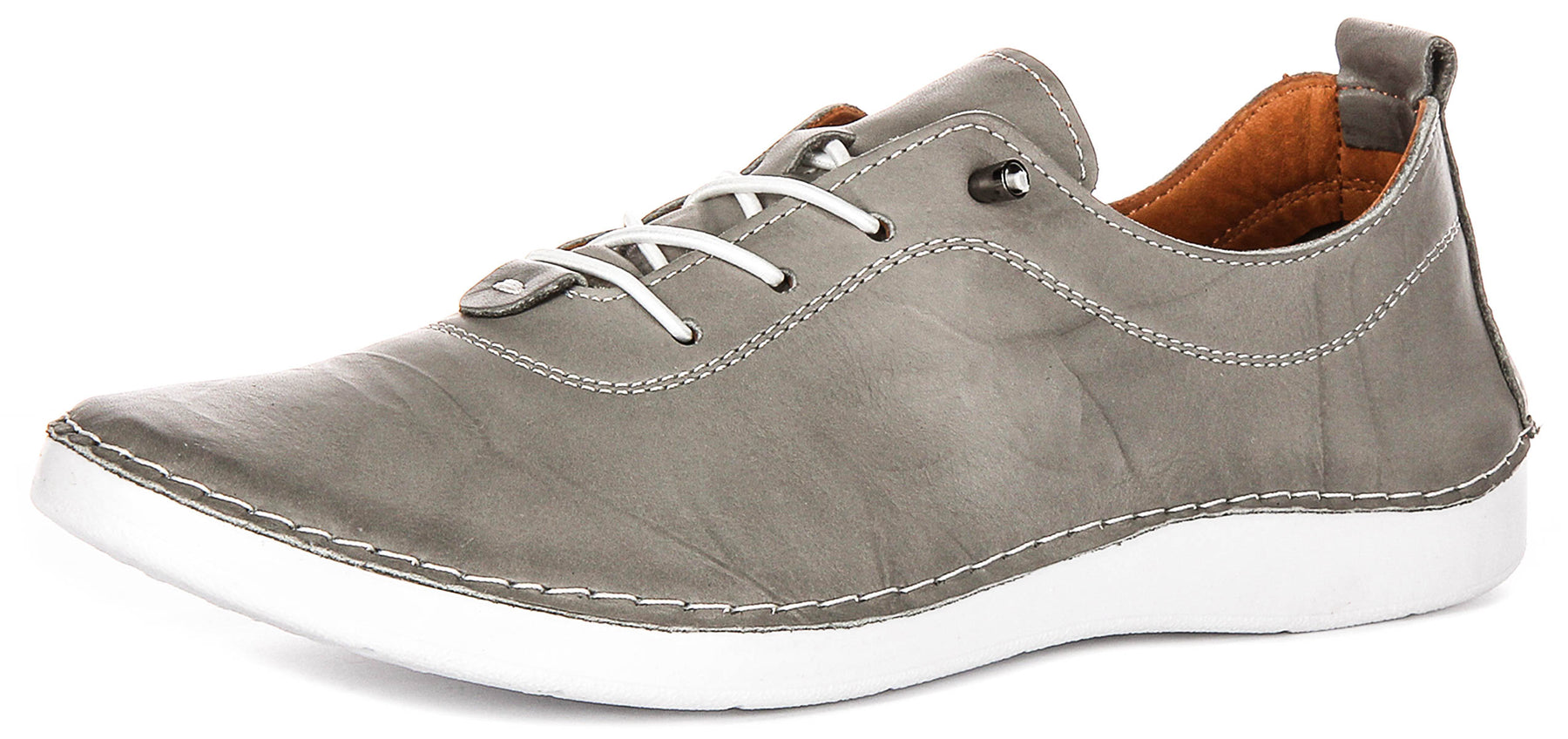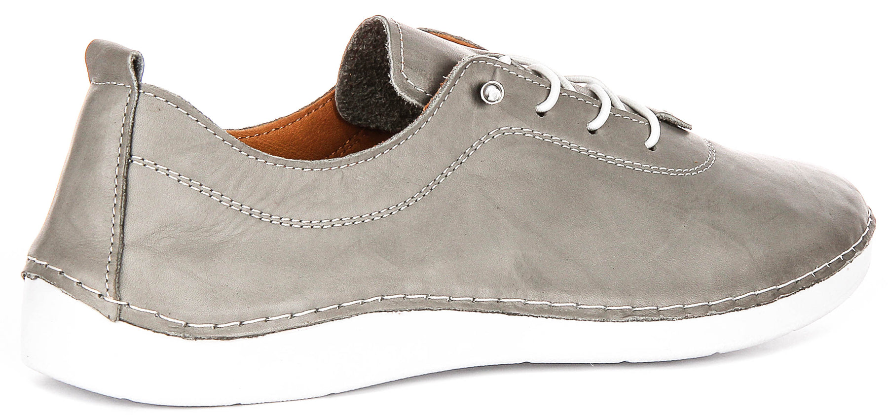 Designed with the modern woman in mind, these Justinreess England trainers offer both style and comfort for all-day wear. The inner lining appears to be a warm tan colour, adding an extra detail of quality to these fashionable and functional leather trainers.