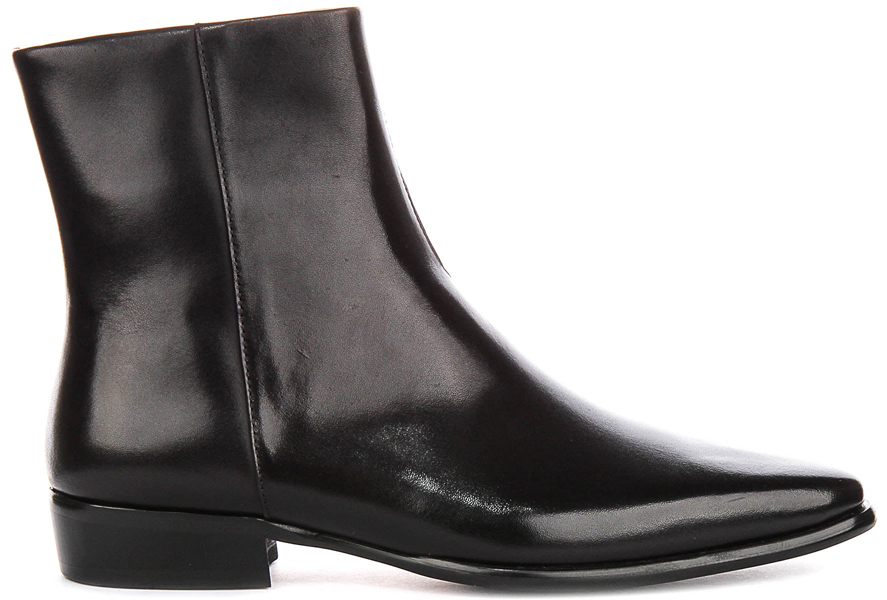 The Jordan ankle boots feature a distinctly sharp and modern chisel toe, providing a sophisticated profile that sets them apart. The design maintains clean lines up to the ankle, offering a flattering and streamlined look. The carefully constructed upper includes subtle panelling and fine stitching, highlighting the attention to detail inherent in their craftsmanship.