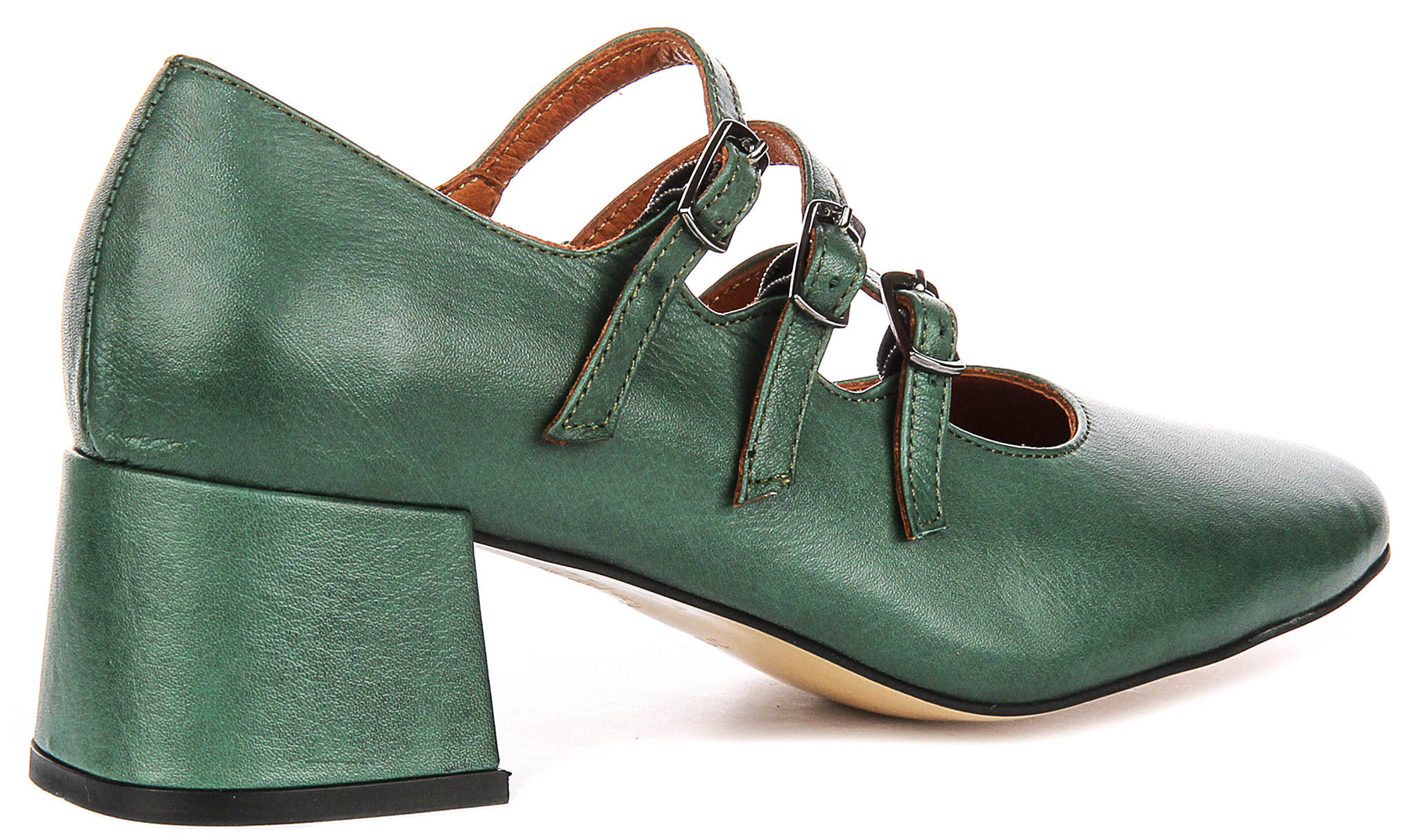 Designed specifically for women, this shoe features three slim, adjustable straps across the front, each secured with a delicate buckle. This not only adds a touch of vintage-inspired style but also offers a secure and customised fit. The softly squared toe box allows ample room, ensuring comfort, while the cushioned interior lining promises a gentle feel throughout the day.
