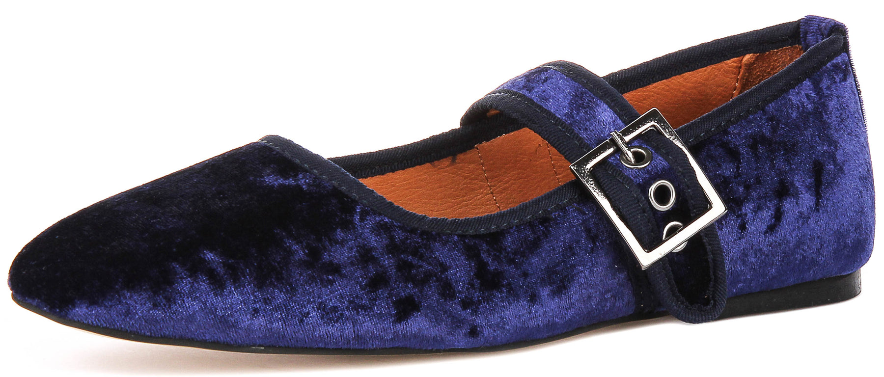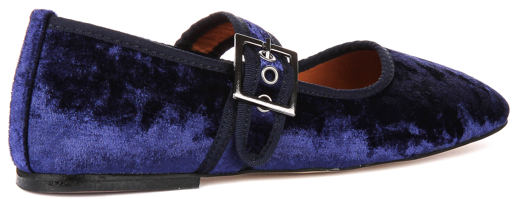 The outer material of the Kiera 2 is high-quality leather, enveloped in a rich, deep blue velvet-like finish. This stunning colour creates a luxurious and versatile look, ideal for both casual and semi-formal occasions. The unique texture of the outer material ensures the shoe stands out, offering a chic alternative to standard flats.