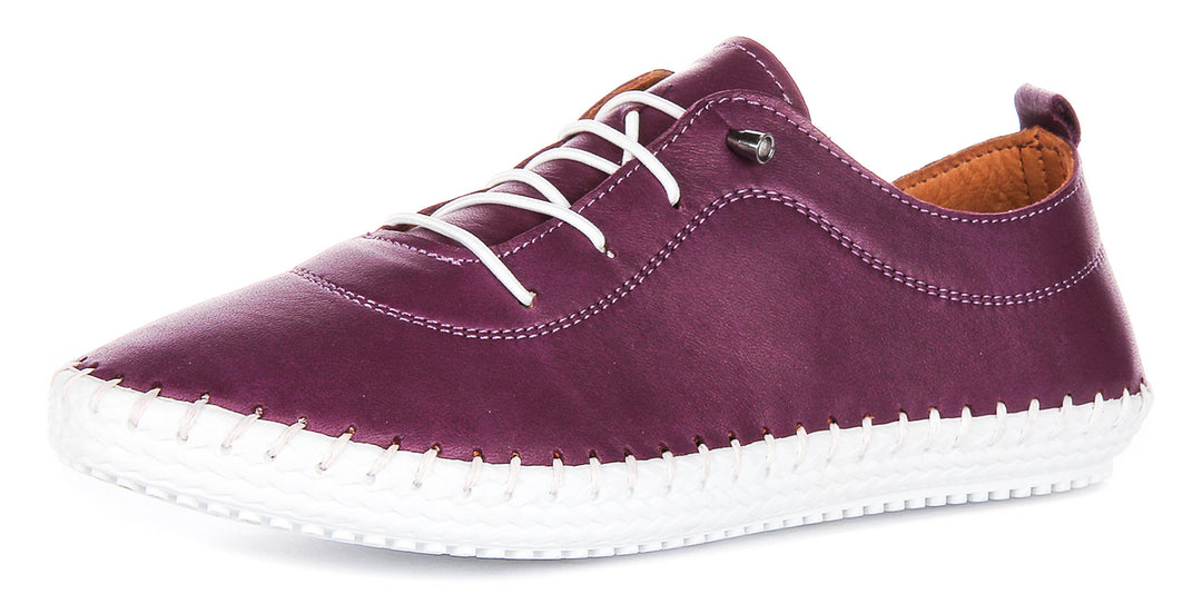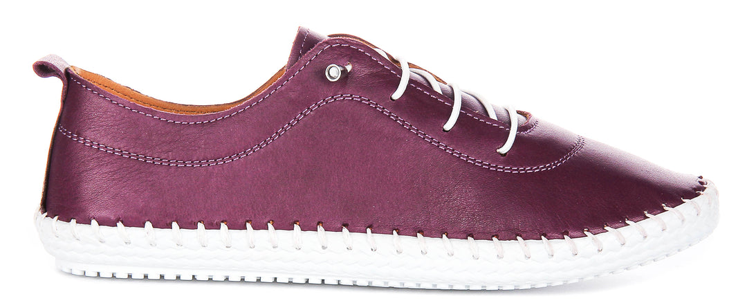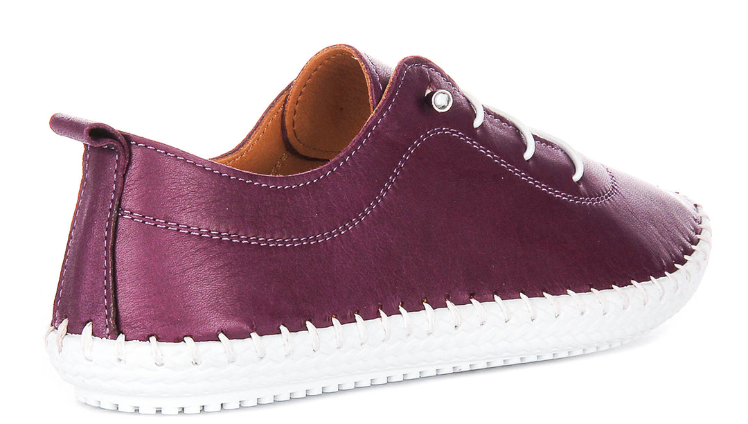 Made from high-quality leather, the outer material of the Lexi 2 shoes ensures durability and a premium feel. The soft leather construction offers a luxurious texture while providing flexibility for all-day comfort. The deep, rich purple colour adds a bold and fashionable touch, making these shoes perfect for both casual outings and semi-formal occasions. The vibrant hue is tastefully complemented by crisp white laces and a white sole for a striking contrast.