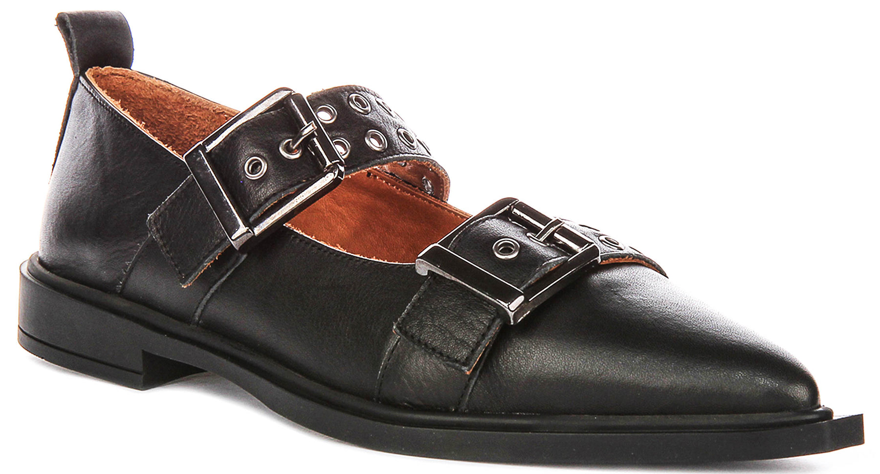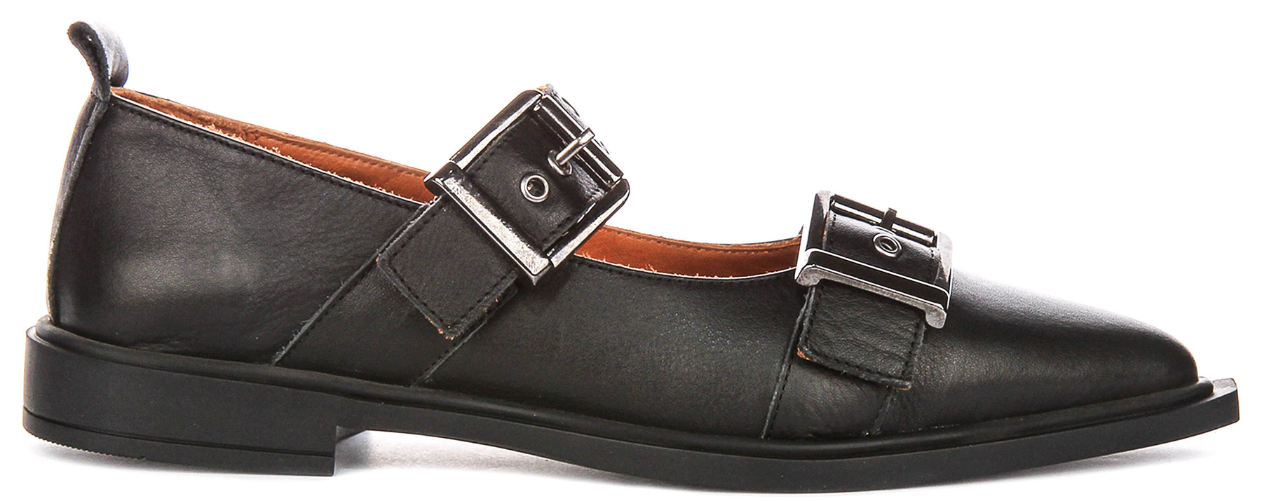 Justinreess England Paige In Black For Women Wide Welt Buckle Ballerina Flt