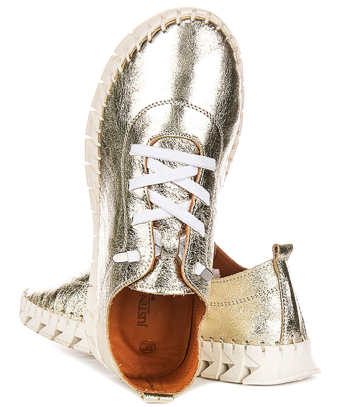 Step into style and comfort with the **Justinreess England Women’s Leather Shoes – Rexy**. Designed for women with an eye for elegance and a penchant for quality, these shoes are the perfect blend of fashion and functionality. With their chic metallic finish and contemporary silhouette, they effortlessly add a touch of sophistication to any outfit.
