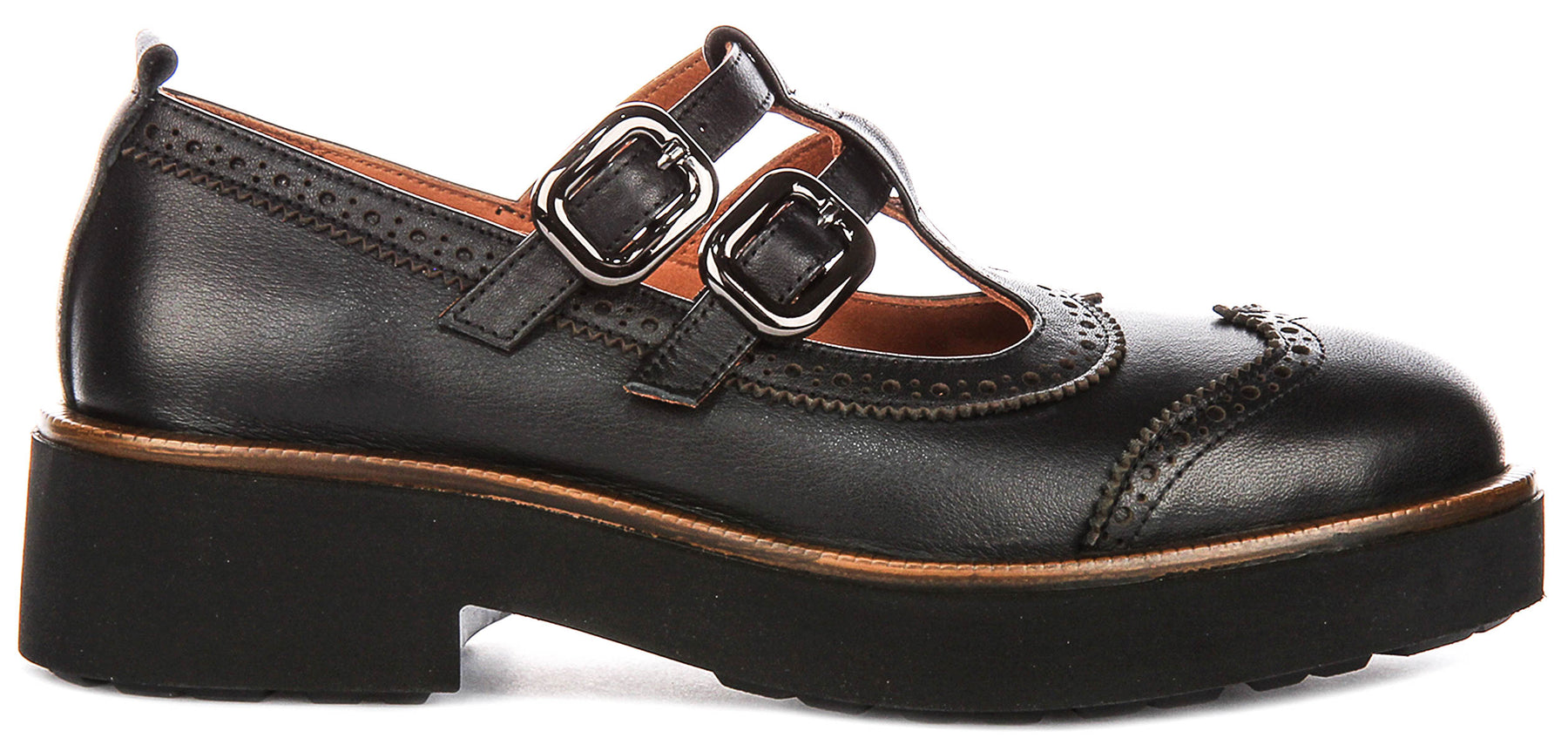 The Ruth shoes are incredibly versatile, effortlessly complementing a range of outfits from smart casual to more polished ensembles. Pair them with tailored trousers for a chic work look, or style them with a flowy dress or skirt for a fashionable weekend outing. These black leather shoes are a statement piece that blends heritage design with a contemporary edge, ensuring you make an impact wherever you go.