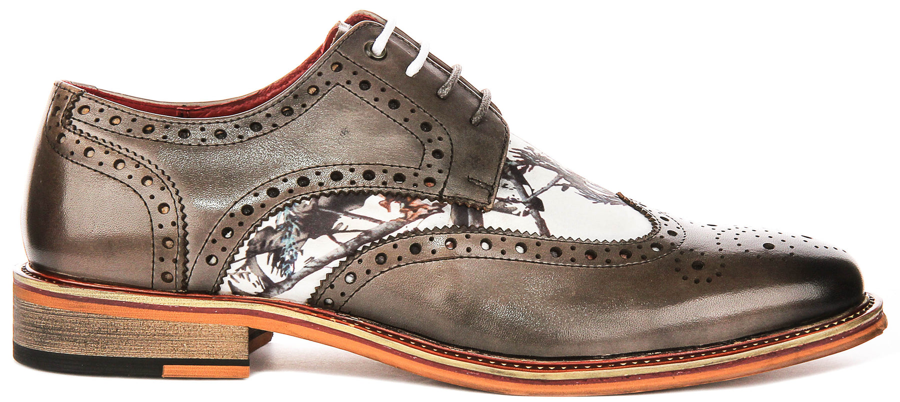 Expertly crafted from premium leather, the Wolf shoes showcase a striking outer material that combines traditional perforated detailing with an eye-catching, artistic printed panel on the sides and vamp. The unique print injects a dash of individuality, setting these shoes apart from conventional formal footwear while maintaining an air of elegance.