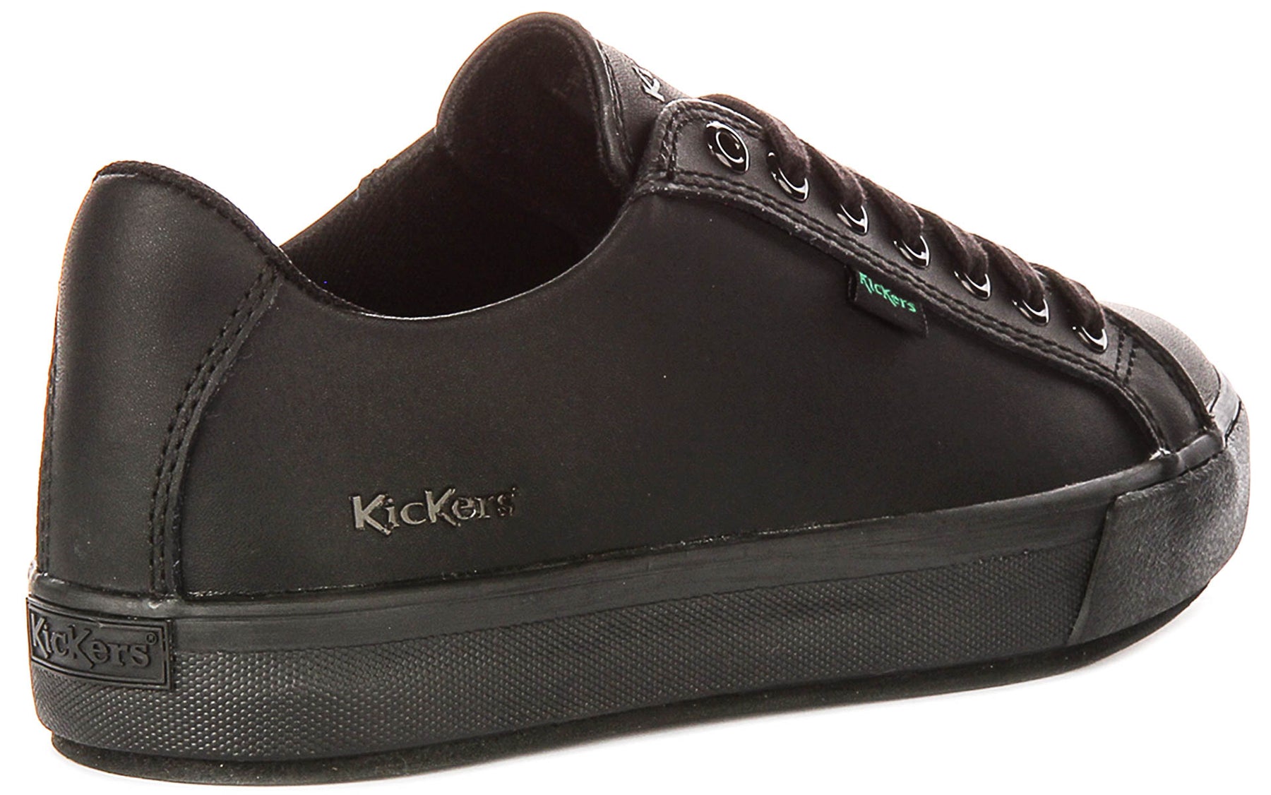 Whether you are heading to work, college, or enjoying a relaxed weekend, these black leather trainers offer exceptional versatility. Their smart, understated design makes them ideal for pairing with anything from jeans and t-shirts to skirts and dresses, providing a polished yet comfortable option for a variety of occasions. Experience the dependable quality and iconic style of Kickers with this essential footwear addition.