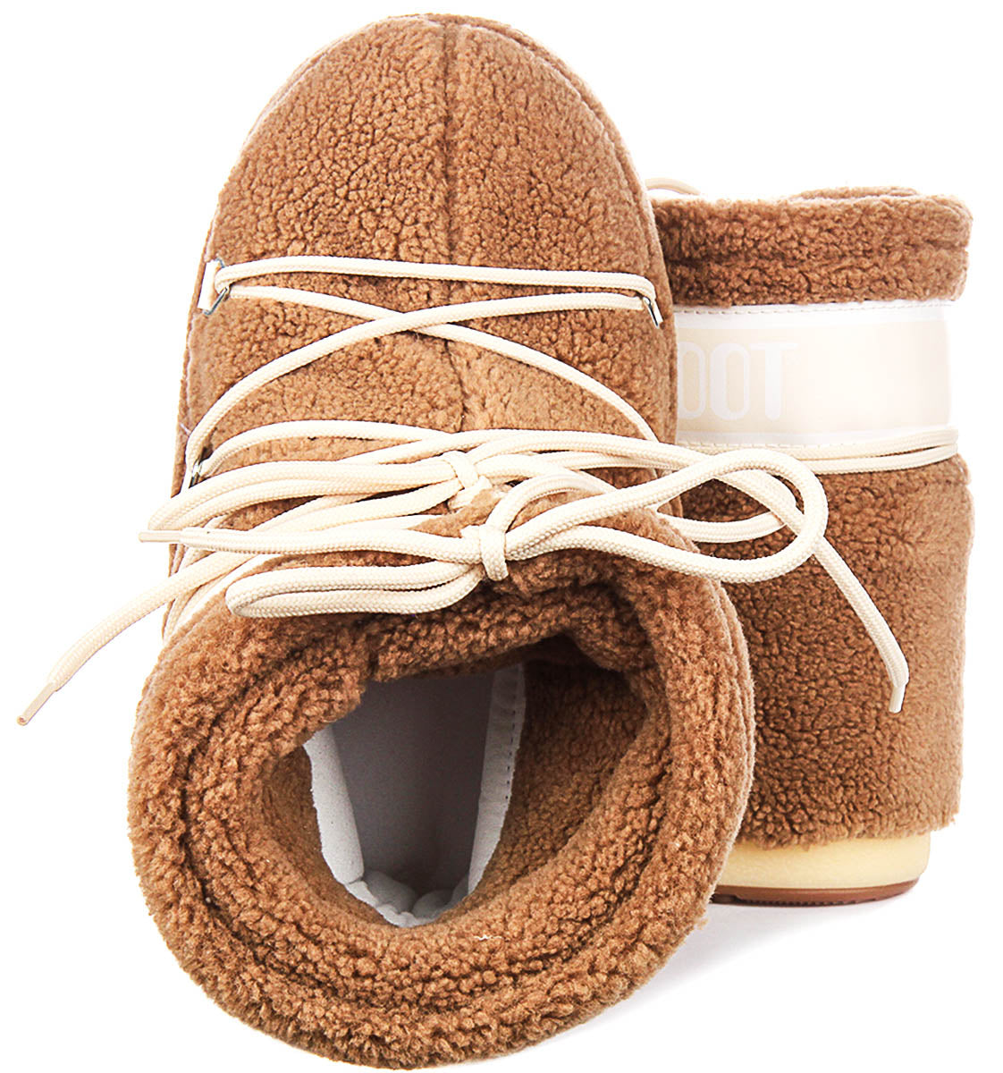 Moon Boot Icon Low Fleece In Brown For Women Lw Midsole Laceup Camel Fleece
