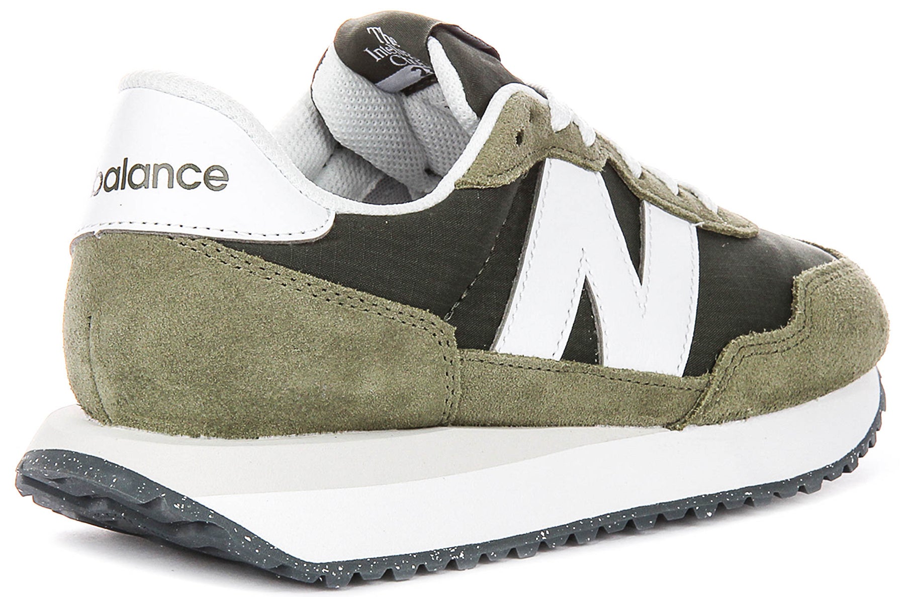 Design details are key to the MS237GR's appeal. The iconic oversized white 'N' logo stands out boldly on the side panels, symbolising authentic New Balance heritage. Crisp white laces offer a secure and adjustable fit, contrasting neatly against the darker upper. A white heel tab proudly displays "new balance" branding, while the padded collar and tongue ensure all-day comfort, embodying a retro-inspired yet thoroughly modern look.