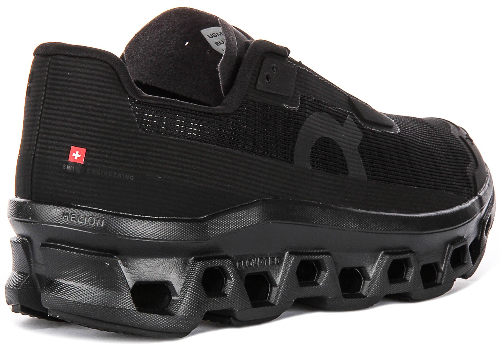 The trainers feature an all-black colourway, marked by the subtle On Running logo on the side and Swiss engineering badge near the heel. This understated design gives the trainers a versatile and stylish edge, suitable for pairing with a wide range of athletic and casual outfits. The distinctive, oversized CloudTec sole is engineered to deliver responsive cushioning and impressive energy return, providing exceptional comfort and support whether you’re running, walking, or on your feet all day.