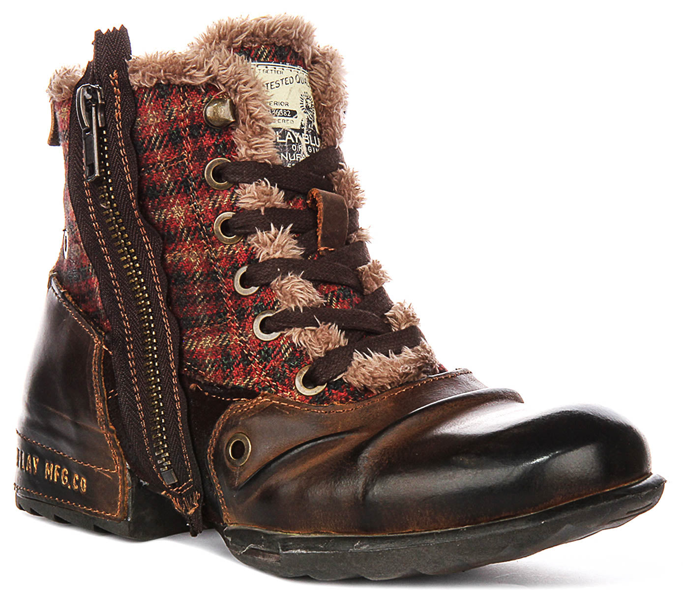 Replay Grip Ltd Check In Brown For Men Vintage Dis Biker Ankle Boots