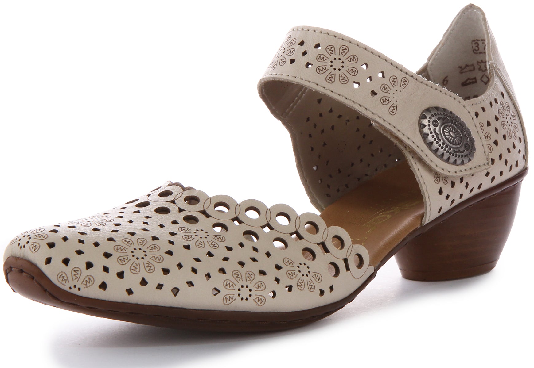 The sandals feature adjustable straps, allowing for a customizable fit to accommodate various foot shapes and sizes. The Geo Met floral pattern adds a stylish and elegant touch to the sandals, making them versatile enough to complement a range of outfits, from casual to more formal. Crafted from high quality leather, these sandals are built to last, withstanding regular wear and tear for long term use.