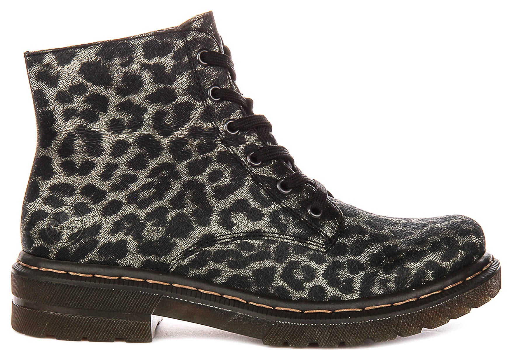 Rieker 78240-90 In Black Multi For Women Antistress Animal Pattern Boot