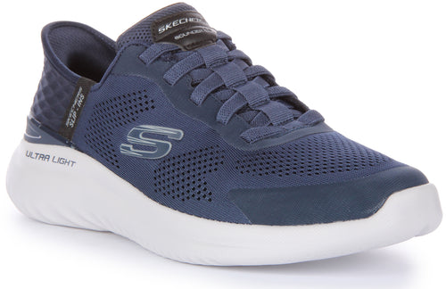 Just Slip In to flexible and lightweight comfort wearing these Skechers Slip Ins Bounder 2.0- Emerged trainers. Made from engineered mesh upper, these sporty vegan trainers feature stretch-lace front and a cushioned Skechers Air Cooled Memory Foam insole. Exclusive Heel Pillow holds your foot securely in place, while the ultra light midsole and flexible traction outsole ensures ultimate comfort.