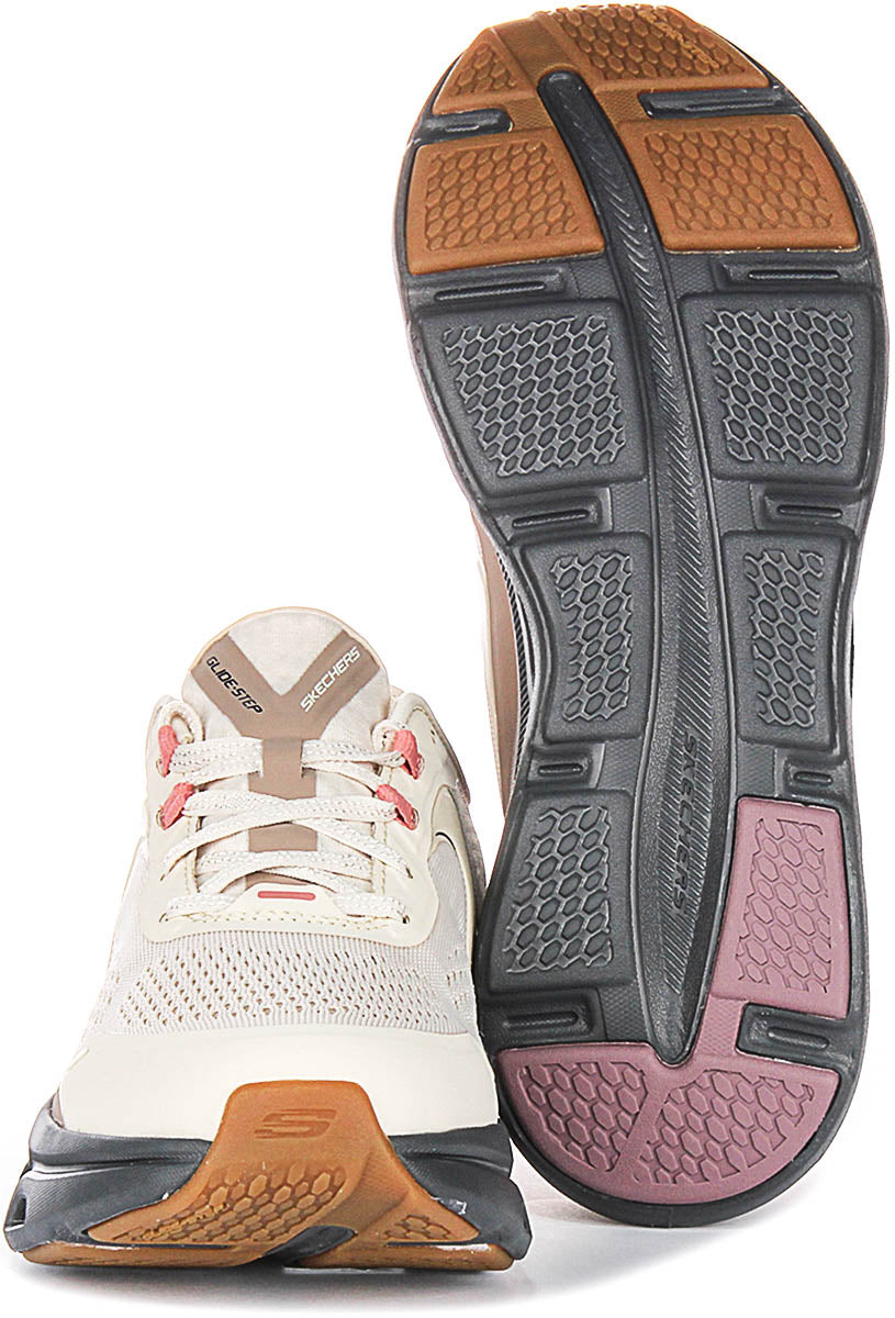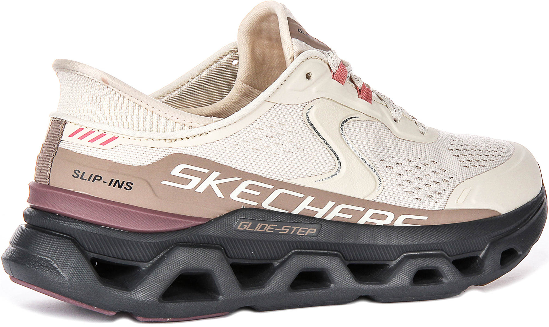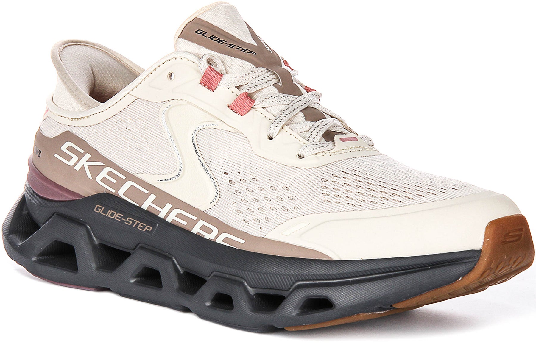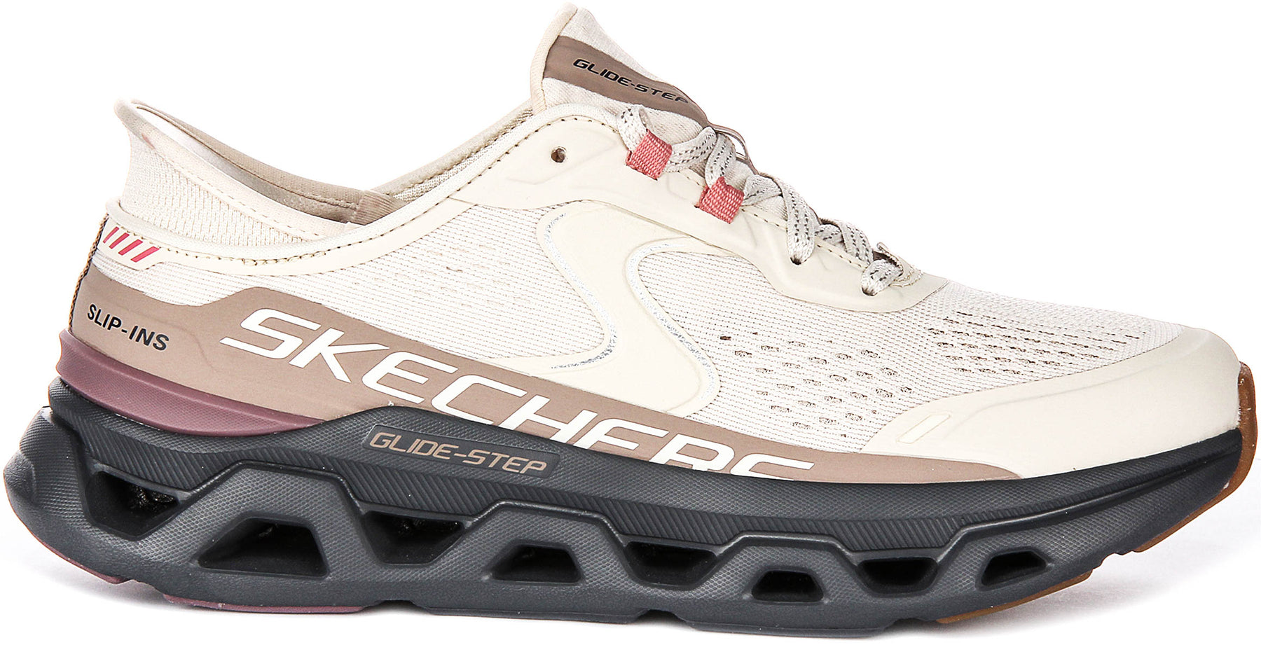 Introducing the Skechers Glide-step Altu Womens Mesh Trainers, a perfect blend of innovative design and exceptional comfort tailored for active women. These trainers showcase a modern and sporty aesthetic, featuring a versatile cream and taupe colour palette with subtle pink accents. The bold Skechers branding along the side adds a contemporary edge, ensuring you step out in style whether at the gym, running errands, or enjoying a casual day out.