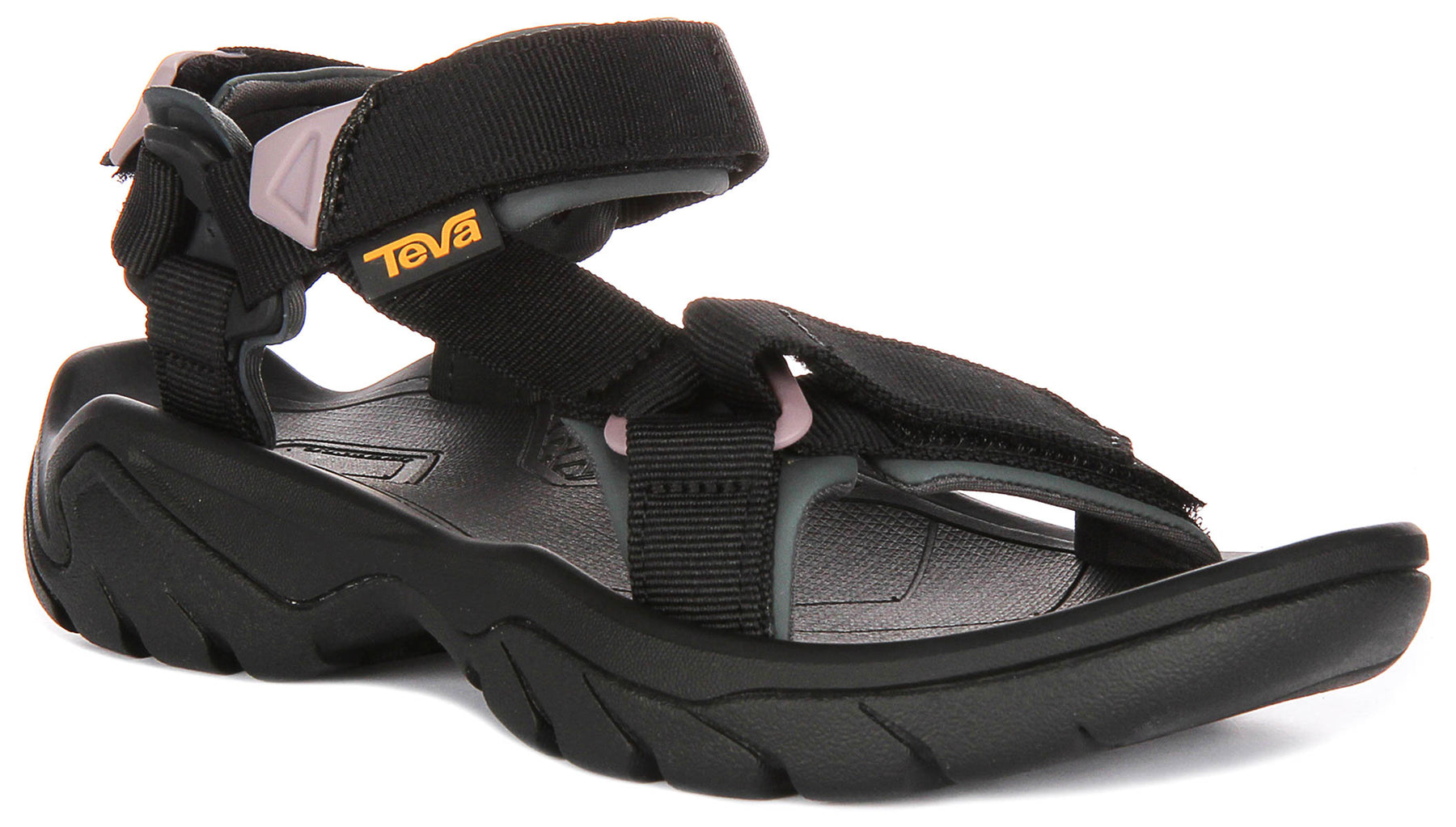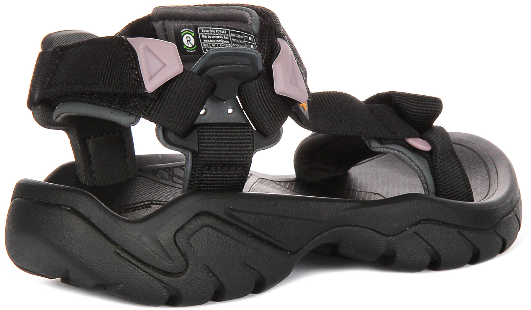 Engineered specifically for women, the Teva Terra Fi 5 Universal Sandals boast a streamlined silhouette and are available in a stylish black colourway with subtle mauve accents. The contoured footbed offers exceptional cushioning, providing superior comfort for all-day wear, while the rugged, textured sole delivers outstanding traction on a variety of surfaces. This makes them an ideal choice for hiking, travelling, or everyday use.