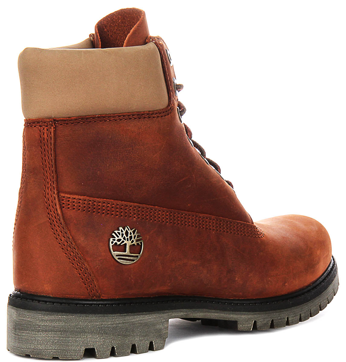 Underfoot, a substantial, lugged rubber sole in a deep charcoal grey offers outstanding traction and grip on a variety of surfaces, ensuring confident footing wherever your adventures take you. The iconic Timberland tree logo is tastefully embossed onto the side of the boot, a mark of authenticity and the brand's commitment to quality. Reinforced stitching throughout the design further attests to the boot's durable construction.