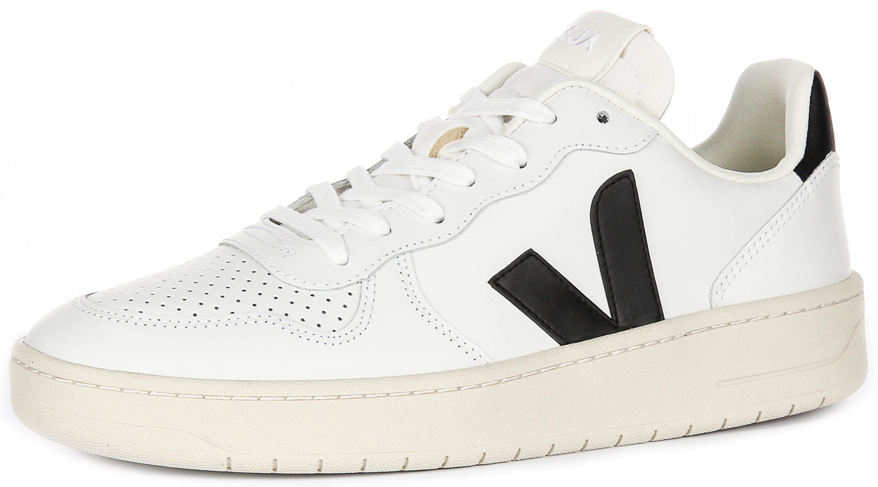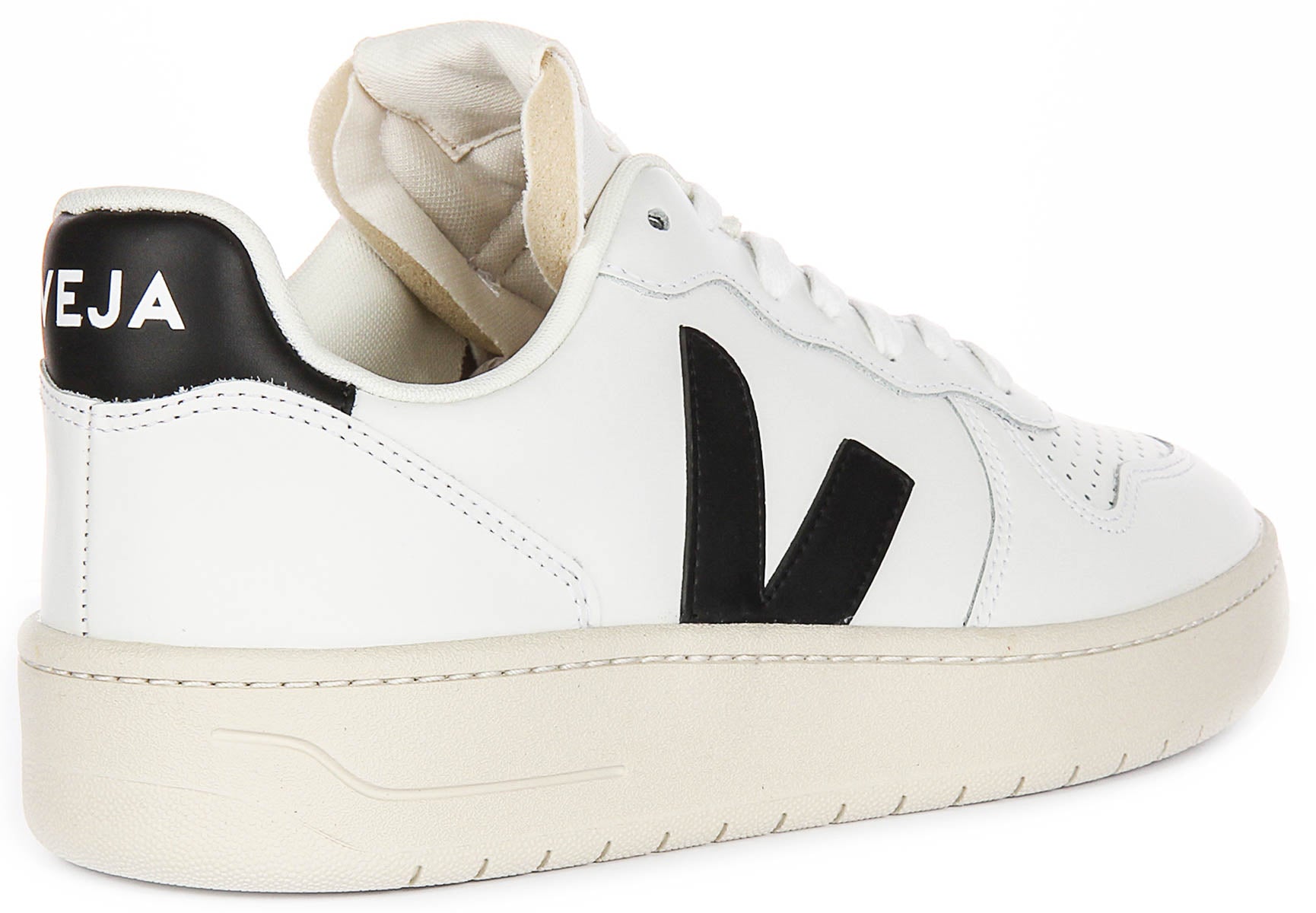 Expertly constructed from high-quality leather, the outer material offers a smooth and polished finish that stands up to everyday wear. The crisp white base is accented with bold black details, including Veja's signature 'V' logo on the side panels and the branded heel tab, ensuring a look that is both classic and eye-catching. The trainers are finished with a sturdy off-white rubber sole, providing durability and reliable traction on a variety of surfaces.