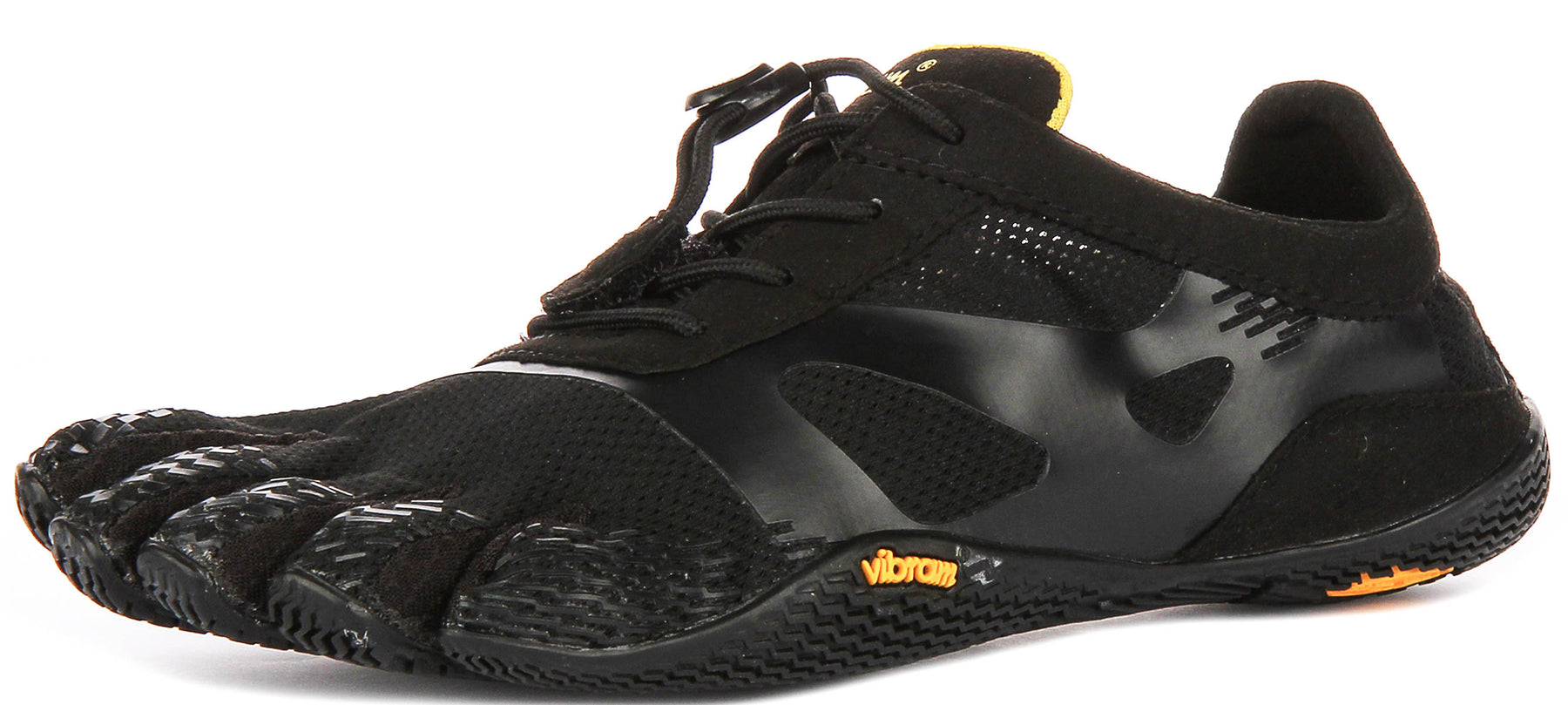 Crafted with a durable and breathable synthetic outer material, the Kso Evo features a lightweight mesh upper that ensures optimal ventilation, keeping your feet comfortable and cool during intense workouts. The most striking feature is the individual toe pocket design, allowing for natural toe splay and improved proprioception, mimicking the sensation of barefoot training. Reinforced synthetic overlays provide essential support and structure across the midfoot, while subtle yellow and orange accents from the iconic Vibram branding add a touch of contrasting detail.